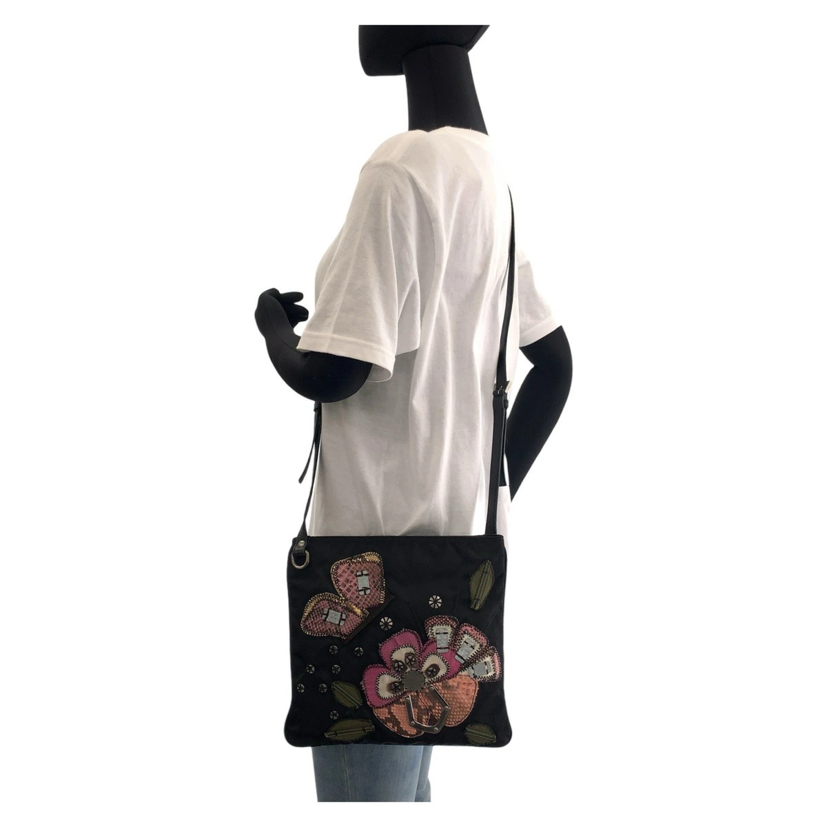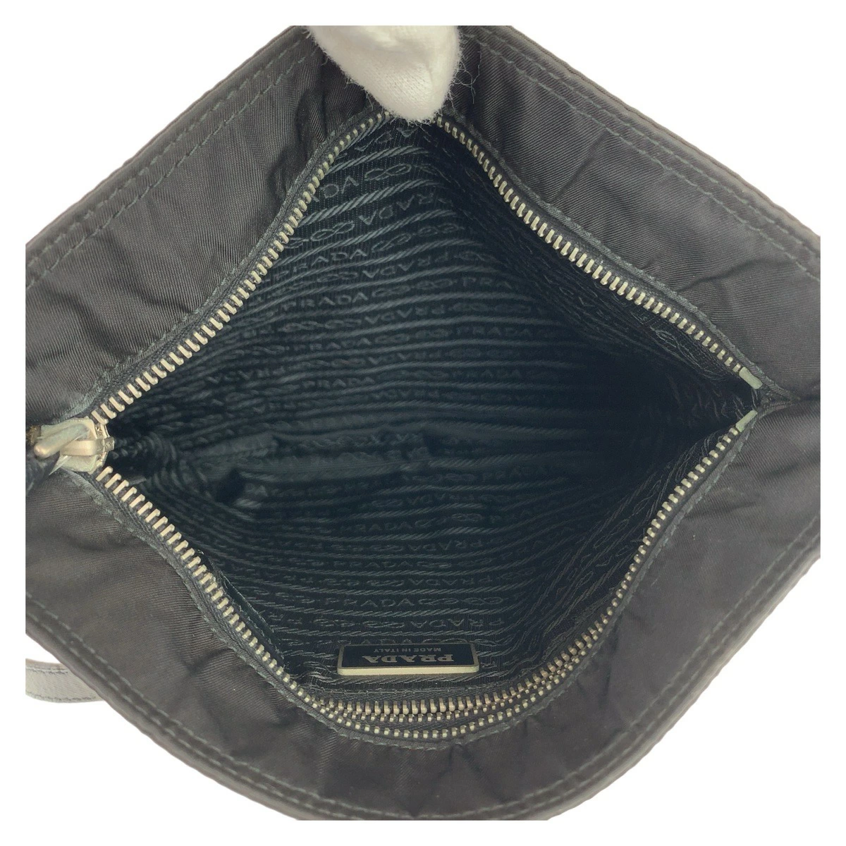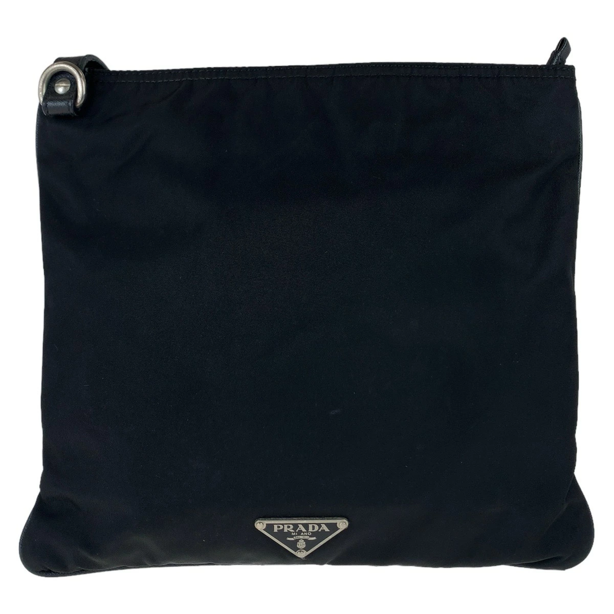 Pre-owned Prada Tessuto triangular logo plate in black with silver hardware, nylon/leather/python shoulder bag/pouch, women's, 503641.