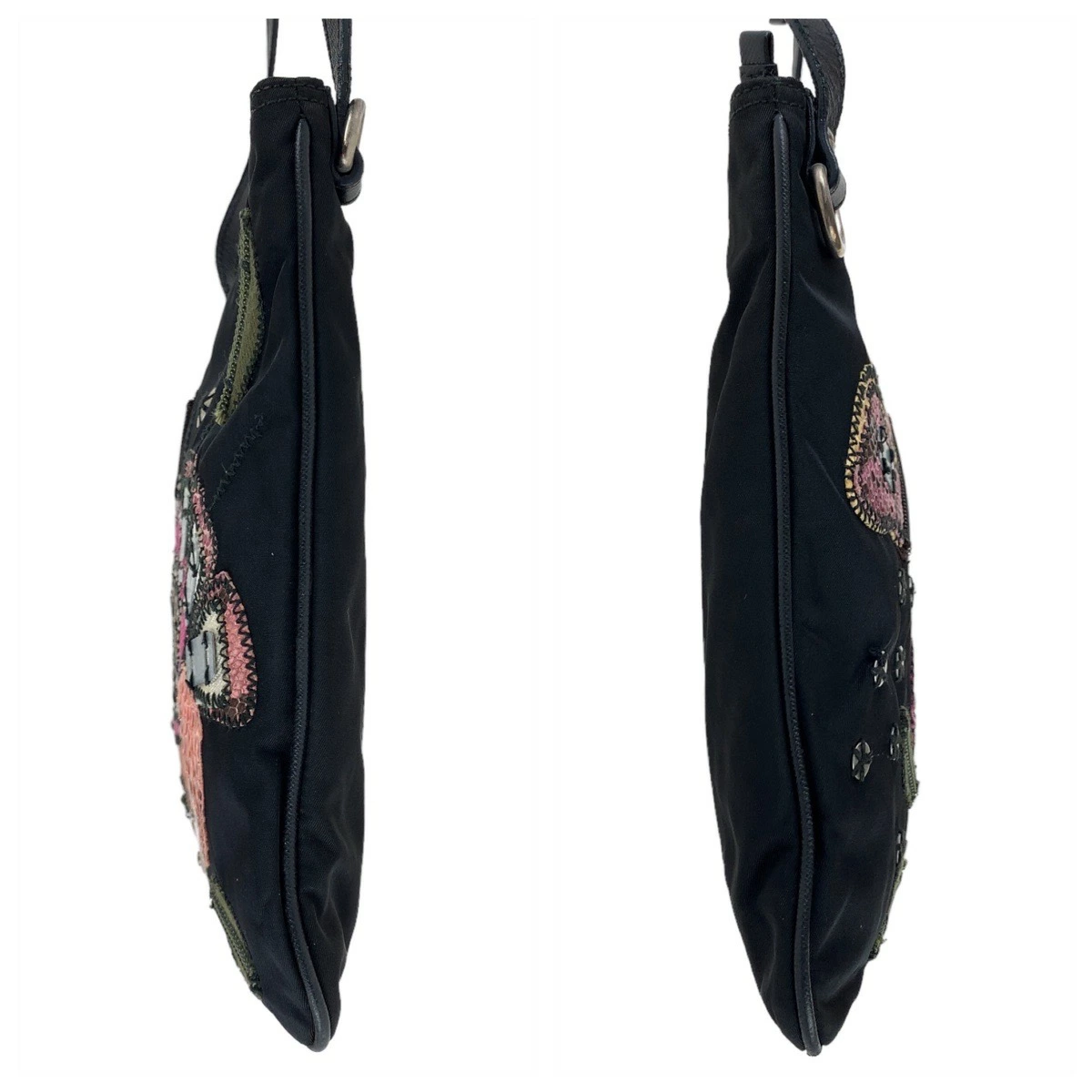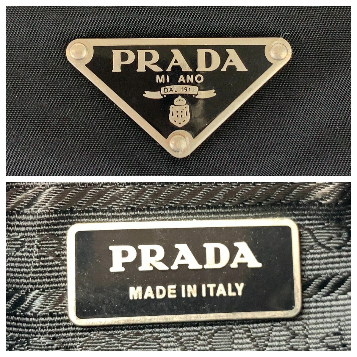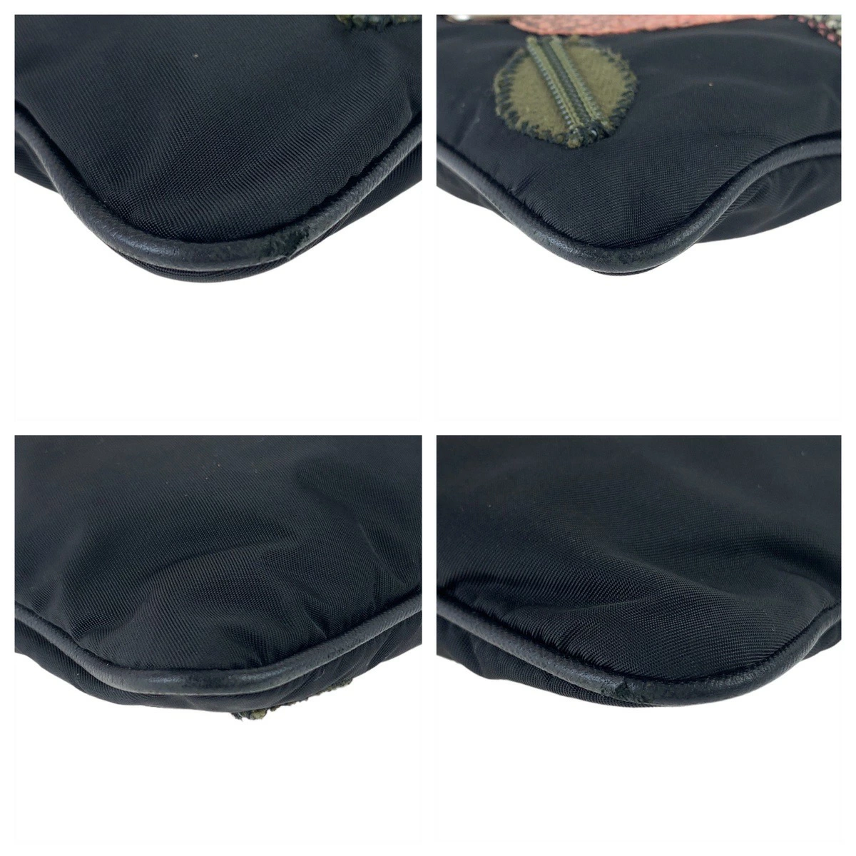 Pre-owned Prada Tessuto triangular logo plate in black with silver hardware, nylon/leather/python shoulder bag/pouch, women's, 503641.