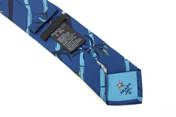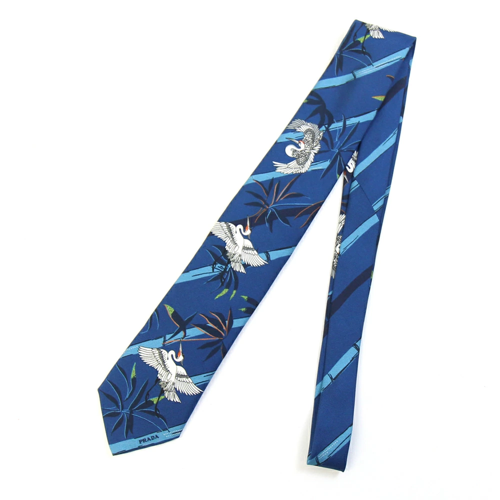Pre-owned Prada tie UCR77, blue, 100% silk, crane design, suitable for suits, business fashion, men's.