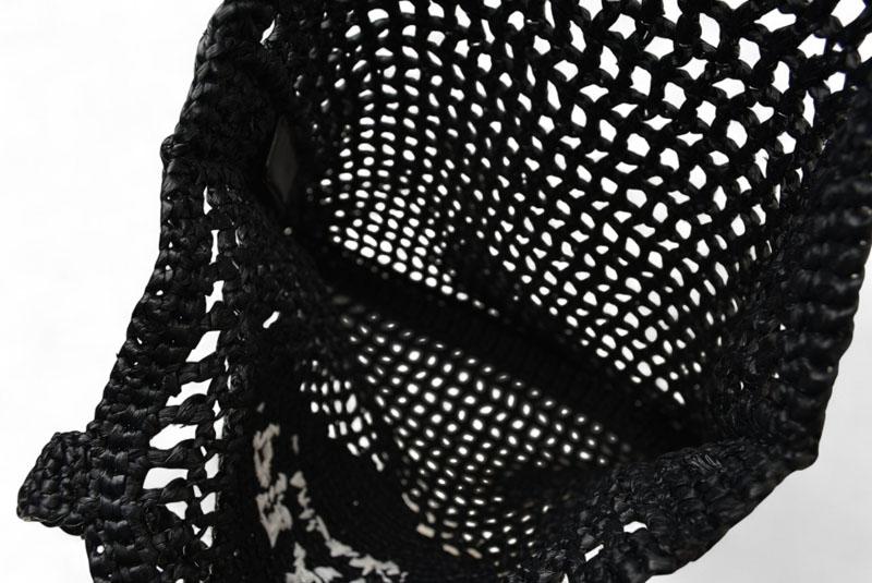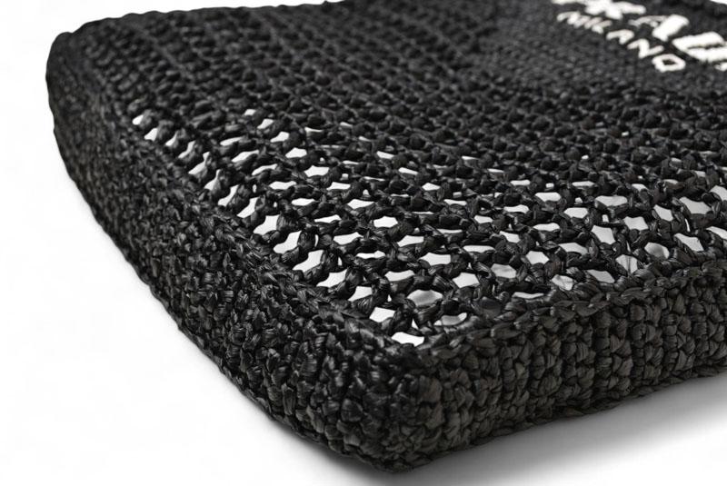 PRADA(プラダ)のラフィア素材を使用したトートバッグ。ブラック×ホワイトのモノトーンロゴが印象的で、ナチュラルながら洗練された雰囲気を演出します。軽量で持ちやすく、マチも広めで収納力も抜群。リゾートシーンはもちろん、タウンユースやカジュアルコーデにも相性抜群のアイテムです。