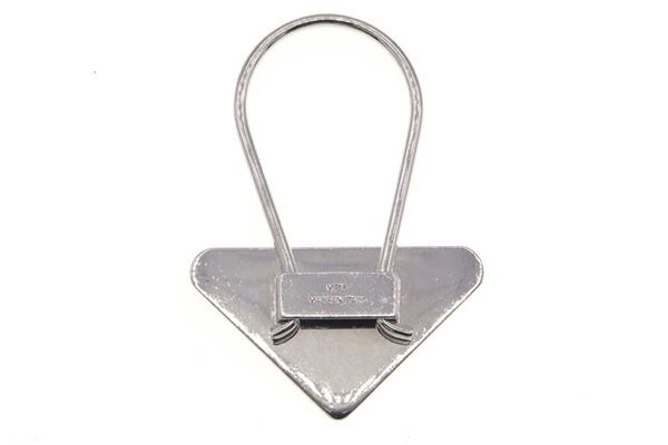 プラダキーリングトライアングルロゴキーリングM713ライトピンクシルバーメタル中古キーホルダーチャームレディースPRADA