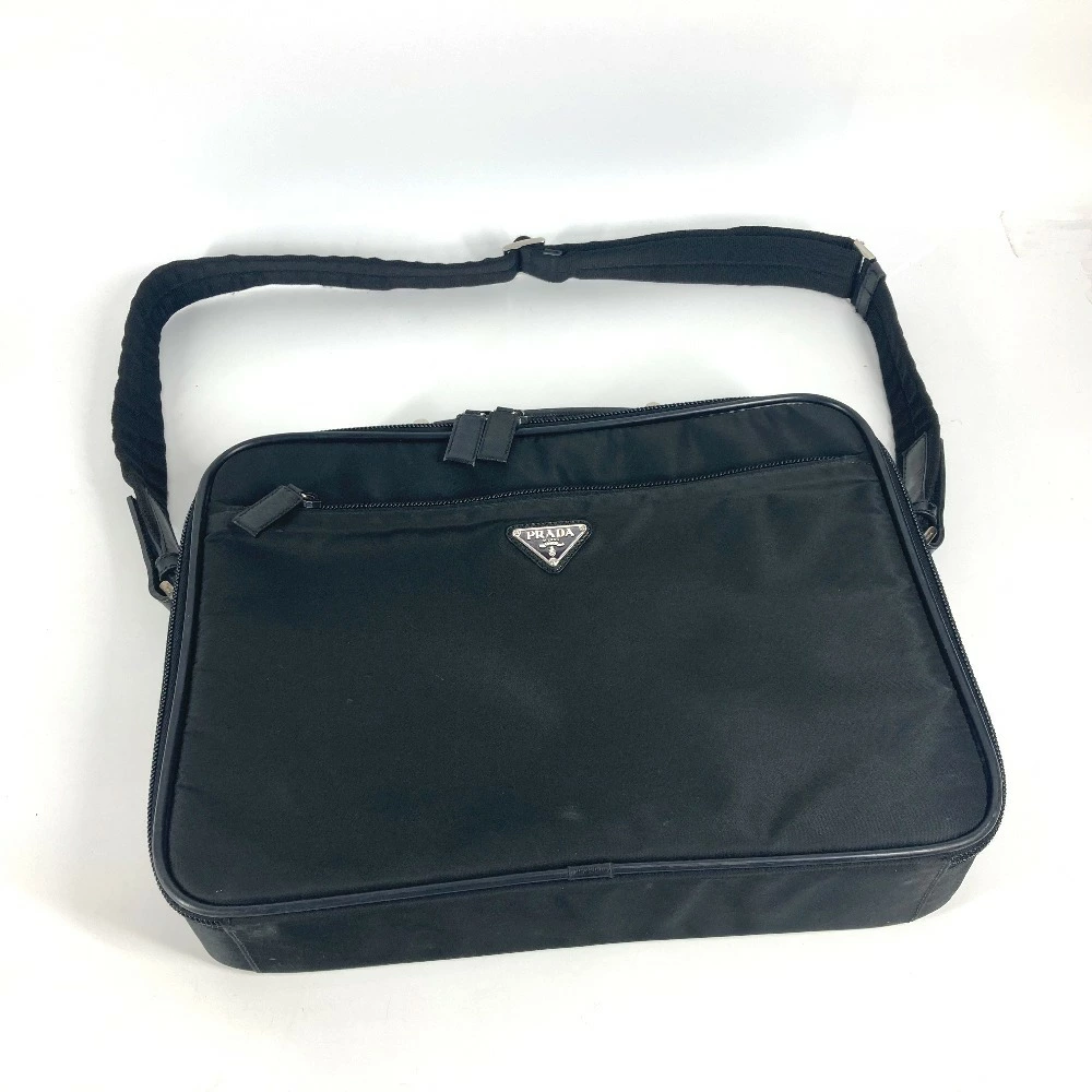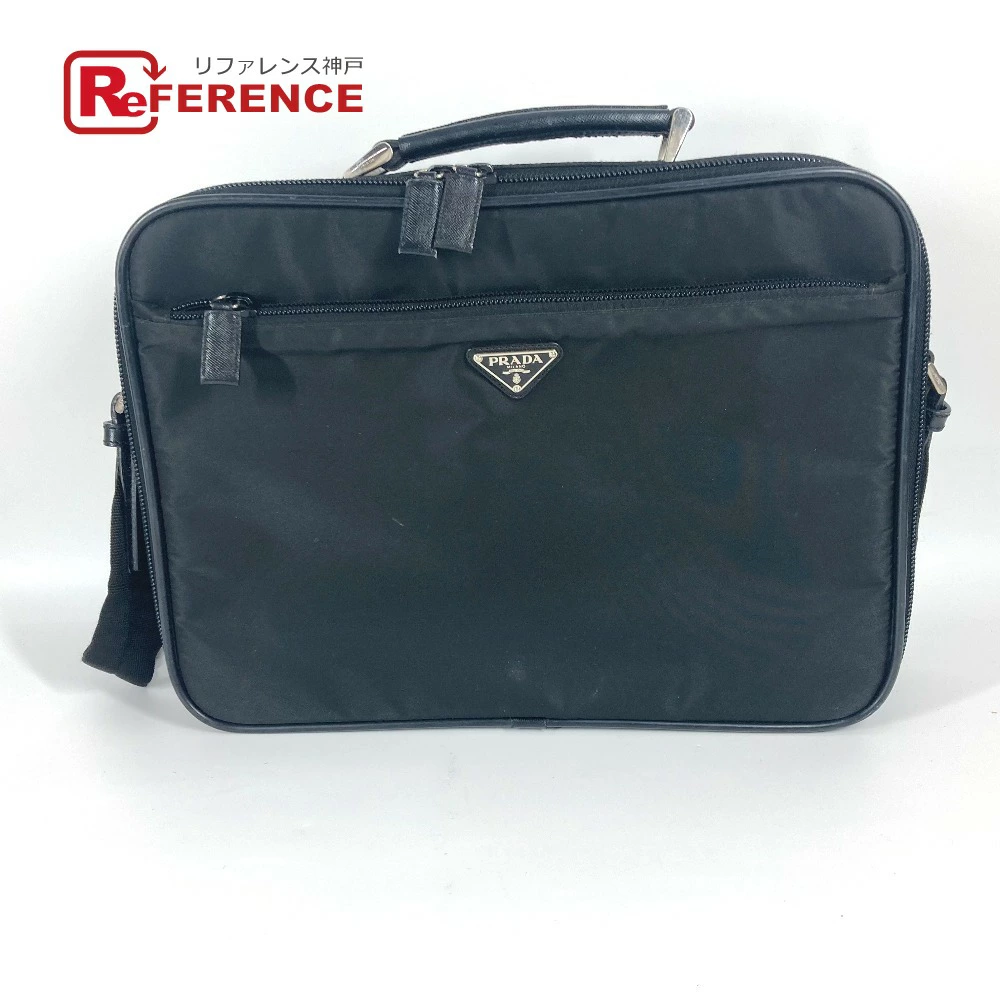 Pre-owned Prada Triangle Logo Plaque 2-Way Bag, Handbag, Business Bag, Shoulder Bag, Leather/Nylon, Unisex, Black