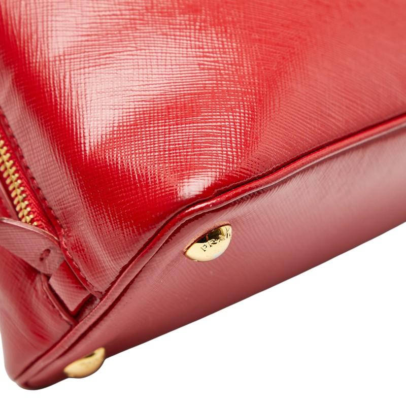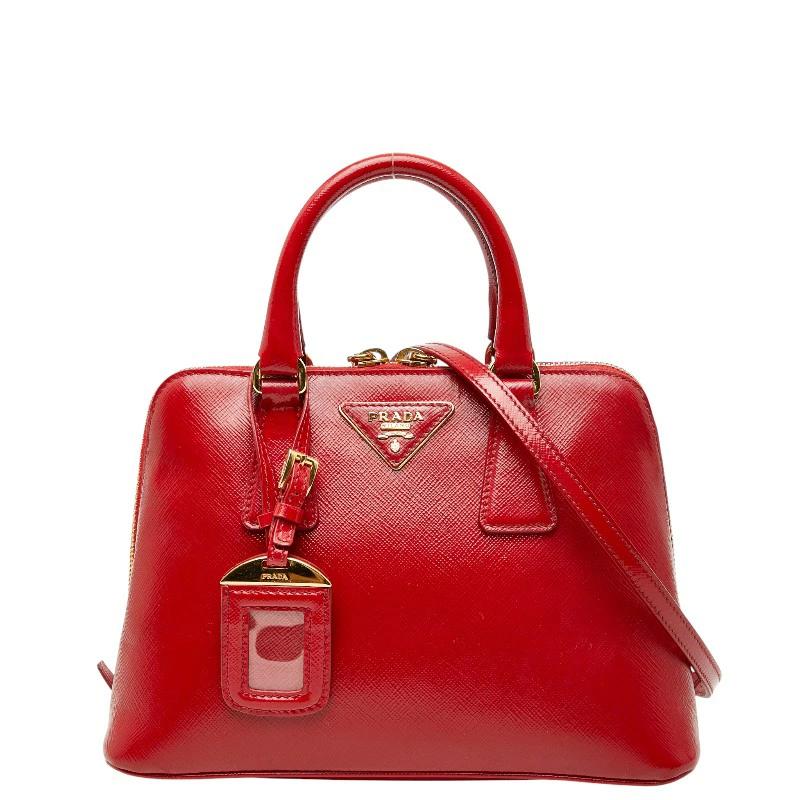 Pre-owned Prada Triangle Logo Plate Handbag/Shoulder Bag, 2-Way, BL0838, Red Saffiano Leather, Women's.