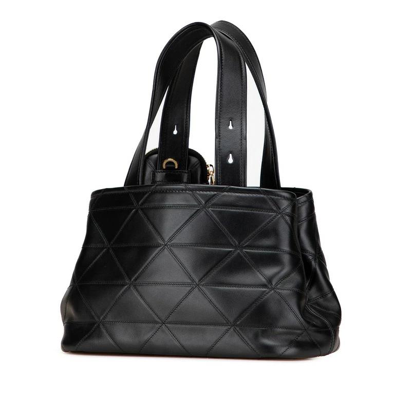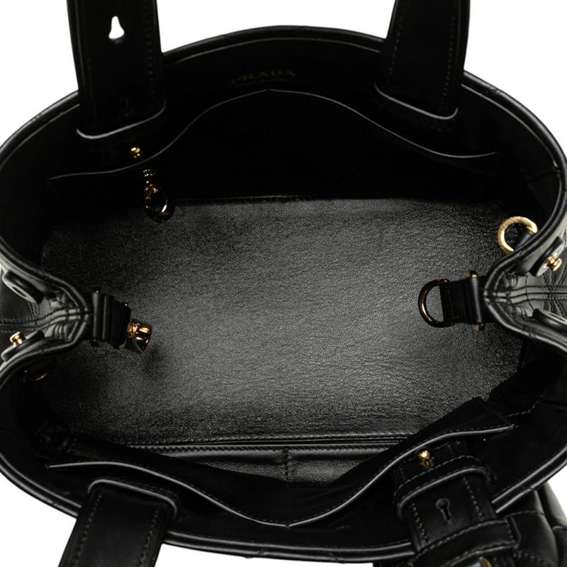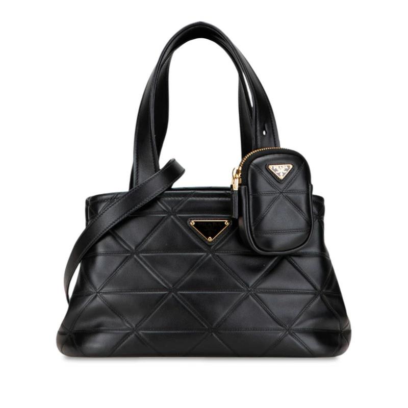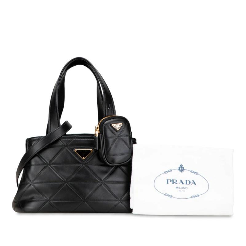 Pre-owned Prada Triangle Logo Plate Quilted Handbag/Shoulder Bag 1BG548 Black Leather Women's
