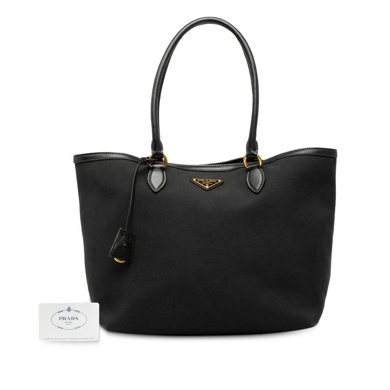 Pre-owned Prada Triangle Logo Tote Bag Shoulder Bag 1BG158 Black Canvas and Leather Women's PRADA