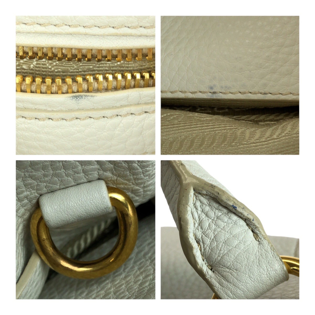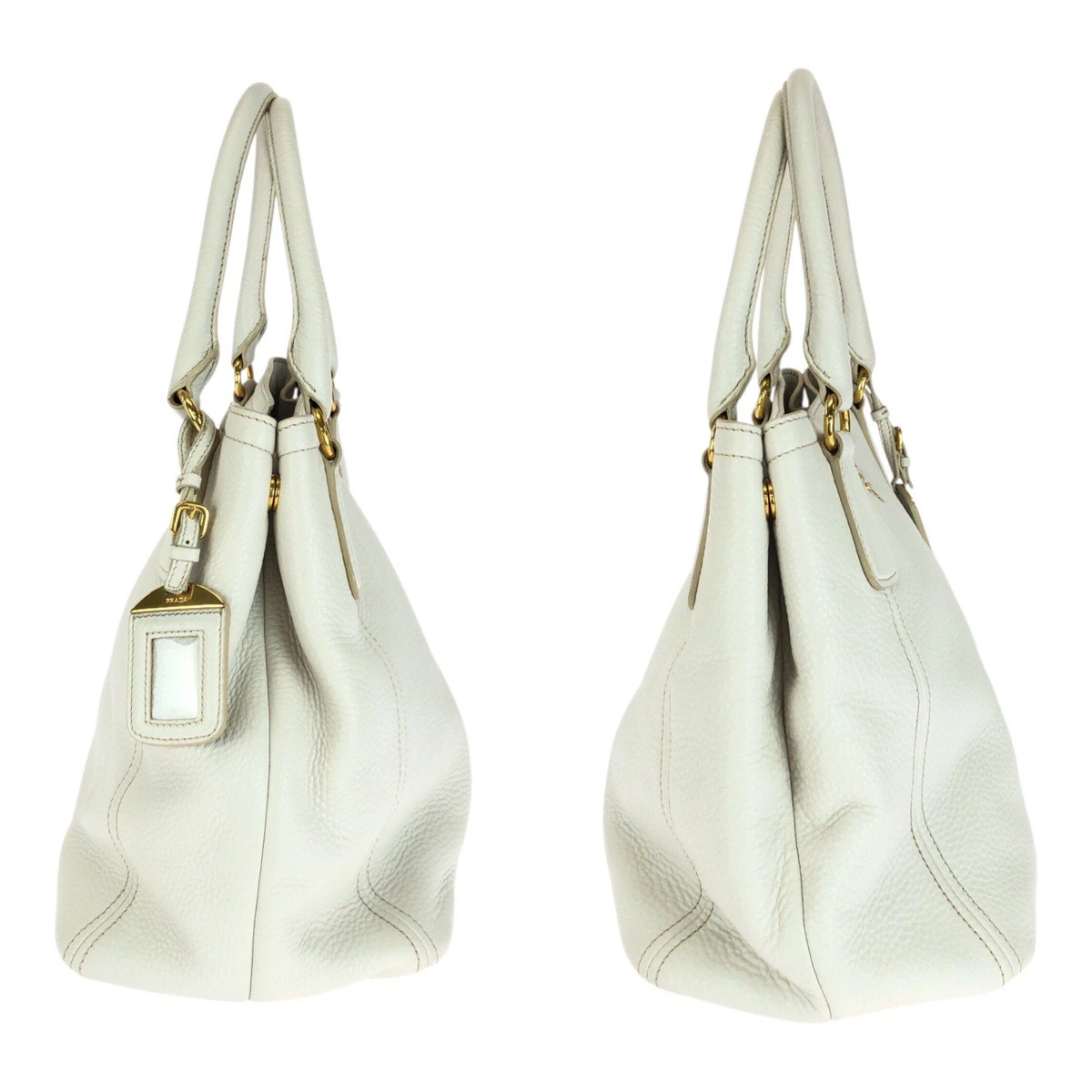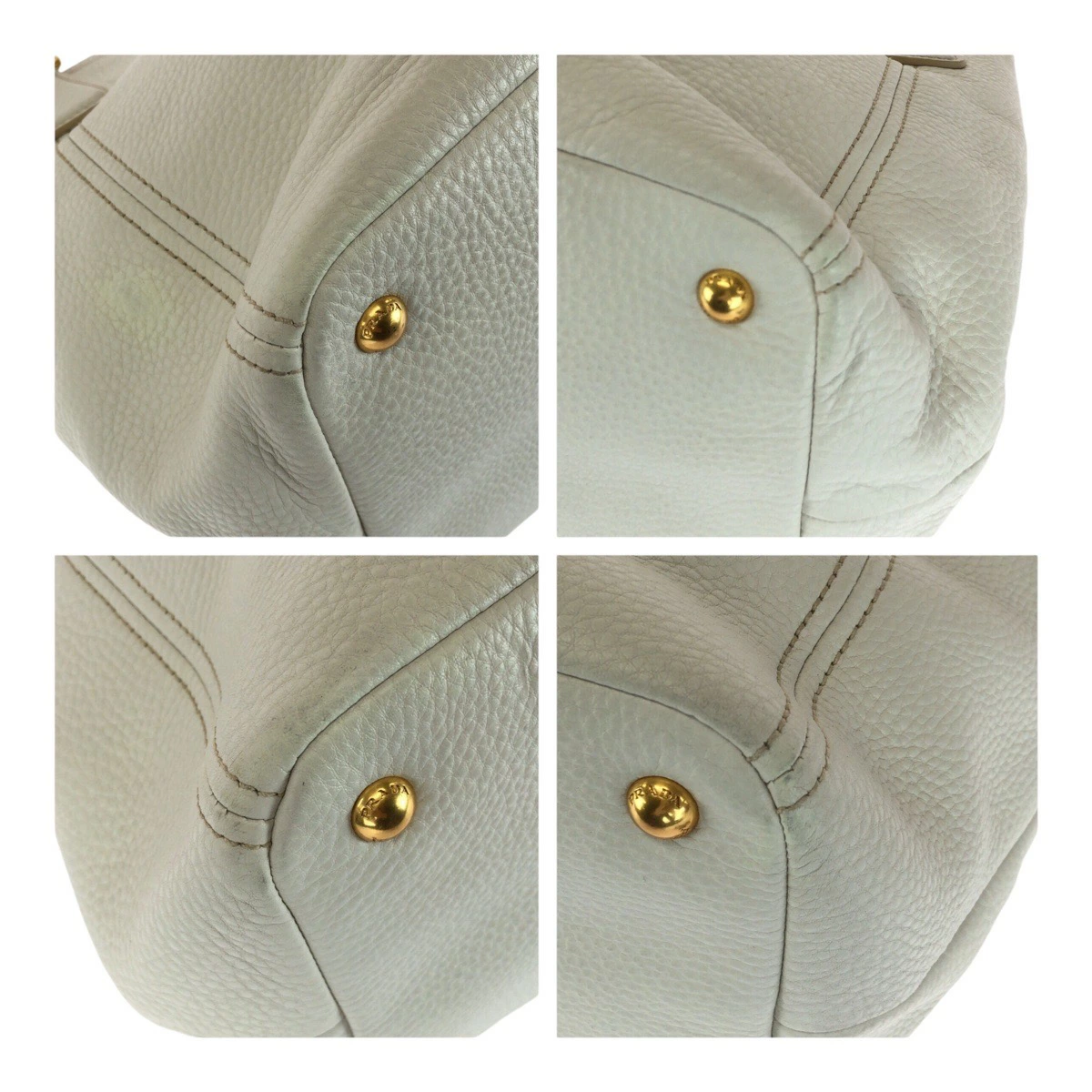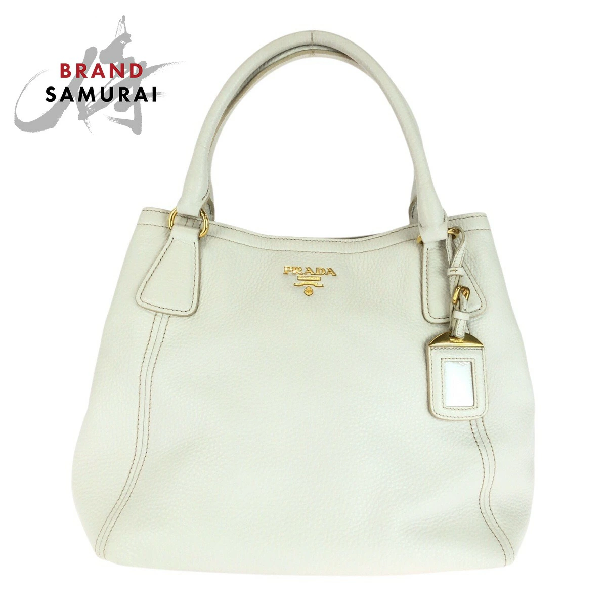 Pre-owned Prada Vitello Dino white leather tote bag with gold hardware, BN2534, women's handbag, 505135.