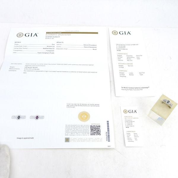 ・サイズ :号数:10.5,トップサイズ (約mm):4.73 3.71 2.54,幅 (約cm):0.2,総重量 (g):6.89,・色(柄)の系統:シルバー・デザイン :リング・素材 :Pt900 / アレキサンドライト / ダイヤモンド・付属品 :GIA鑑定書-------------商品状態-------------・ランク :A・詳細 :こちらのリングは、0.37ctのアレキサンドライト、さらにステップカットとラウンドのダイヤモンドが計0.53ctセットされています。細部にこだわったデザインのおかげで、リング全体に個性を与えています。アレキサンドライトの色味は光によって変化し、日中の明るい光では深みのある緑が魅力的に輝き、オレンジ系のライトの下では赤紫色の美しい色合いを見せます。このダイナミックなカラーチェンジは、見る者を魅了することと思います。