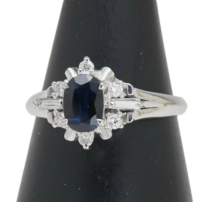 Pre-owned Pt900 platinum ring with 0.85ct sapphire and 0.24ct diamonds, size 12.5, for women.