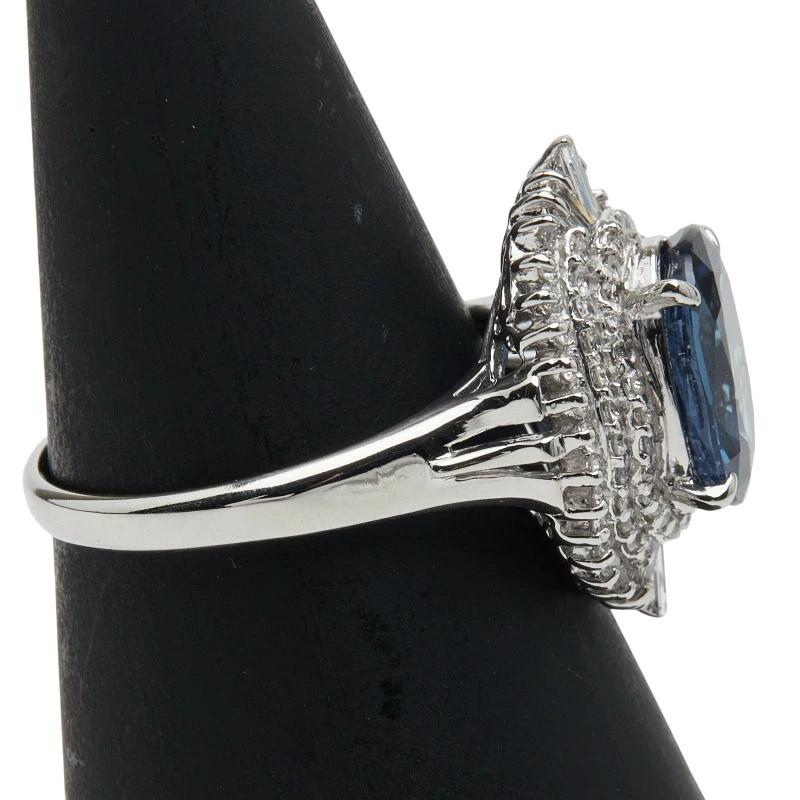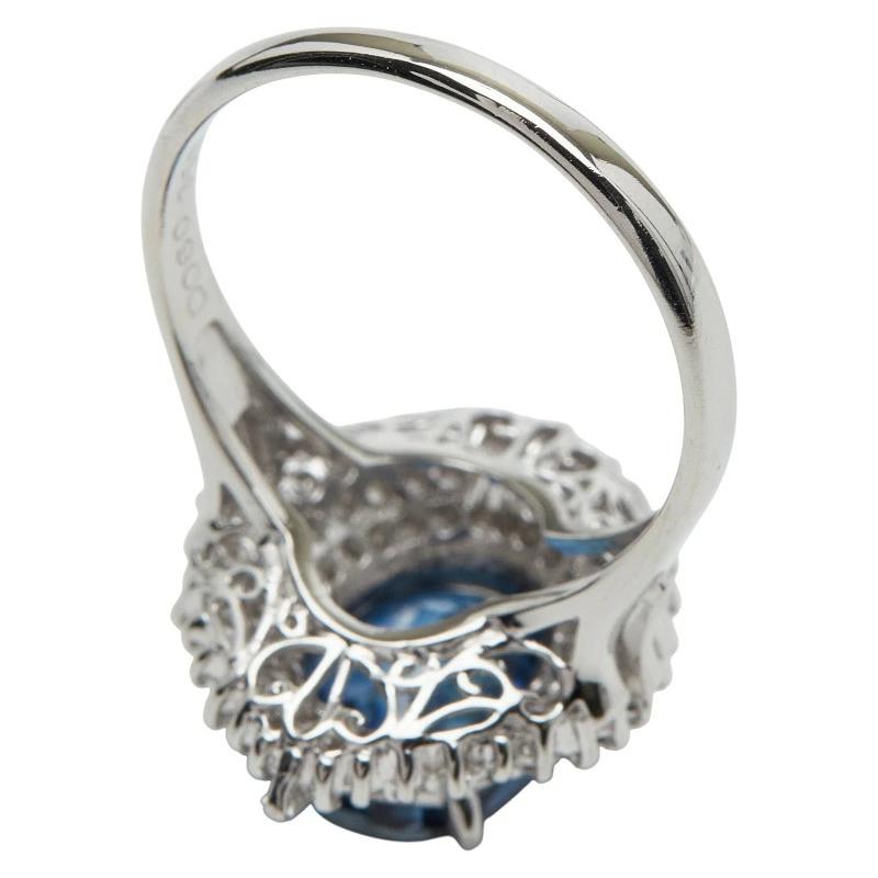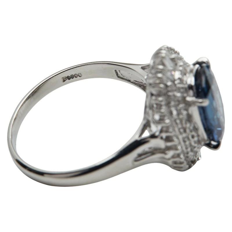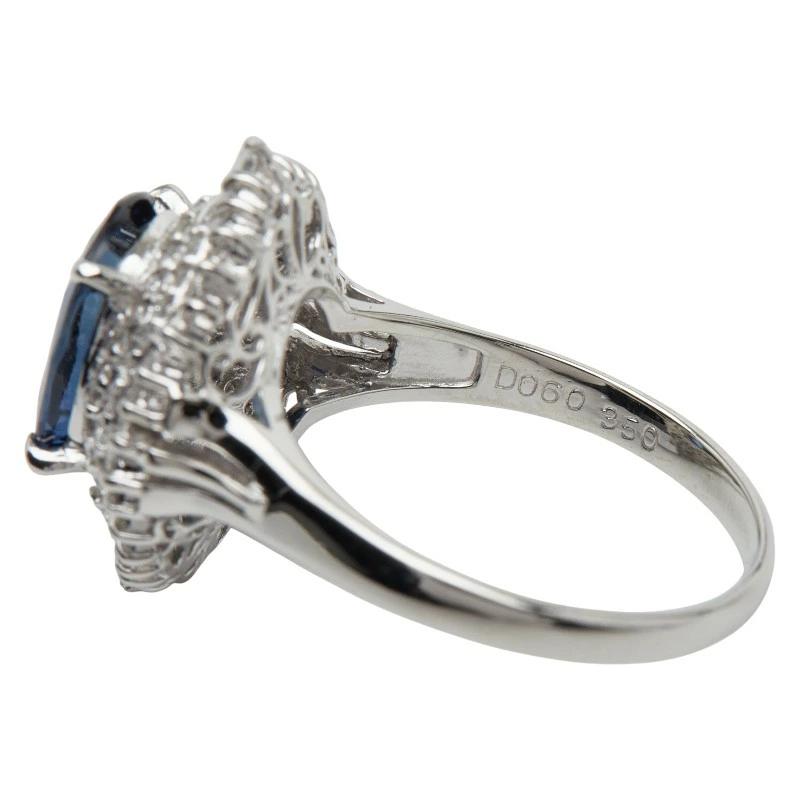 Pre-owned Pt900 platinum ring with 3.50ct sapphire and 0.60ct diamonds, size 14, for women.
