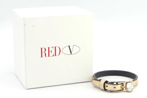 Pre-owned Red Valentino Bracelet UQ2J0B75 in Gold, Black Leather, and Crystals. Women's Bangle.