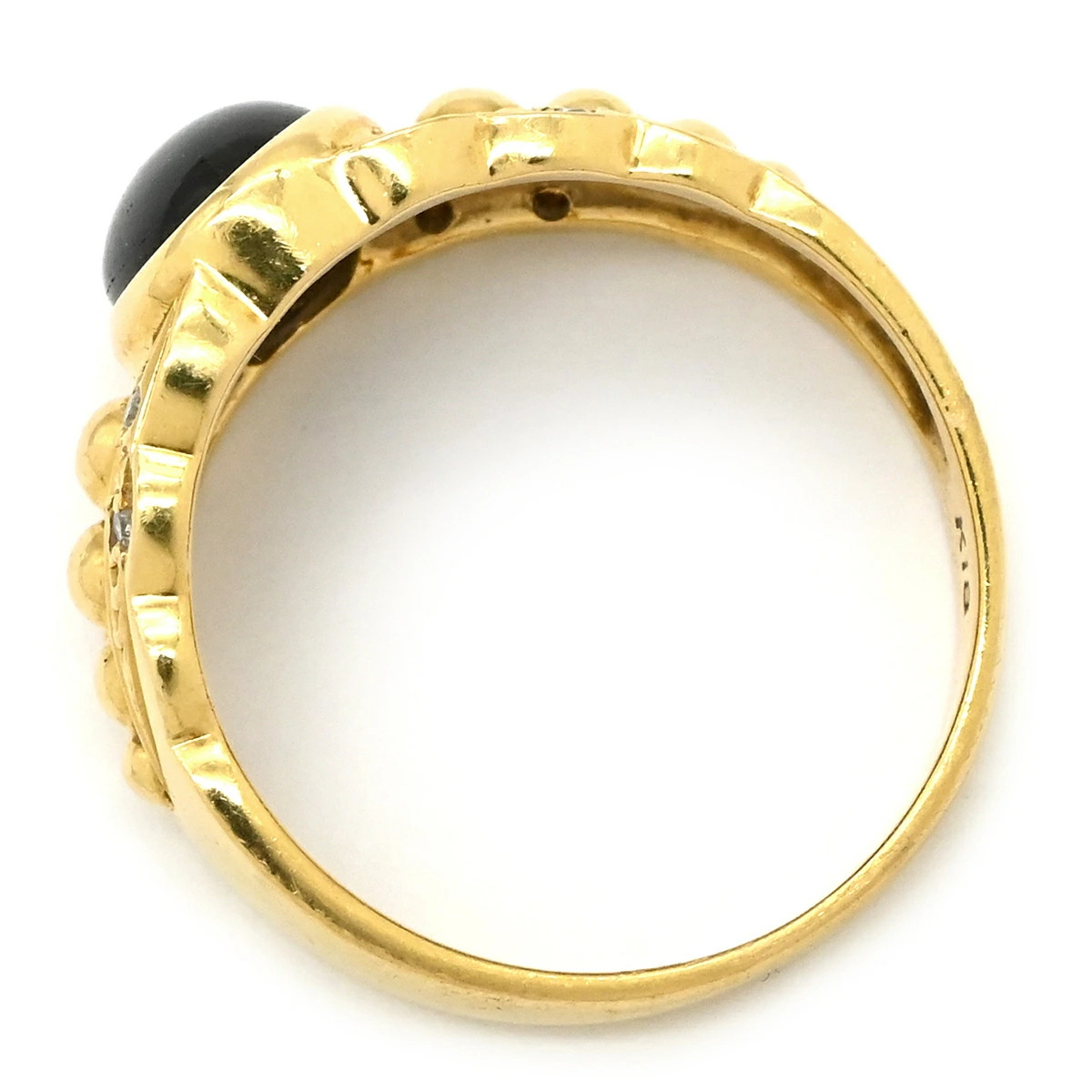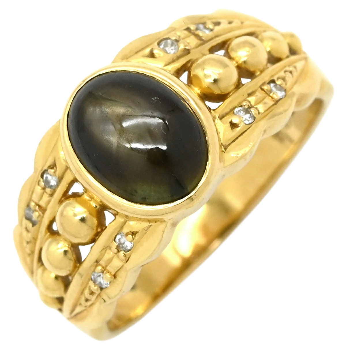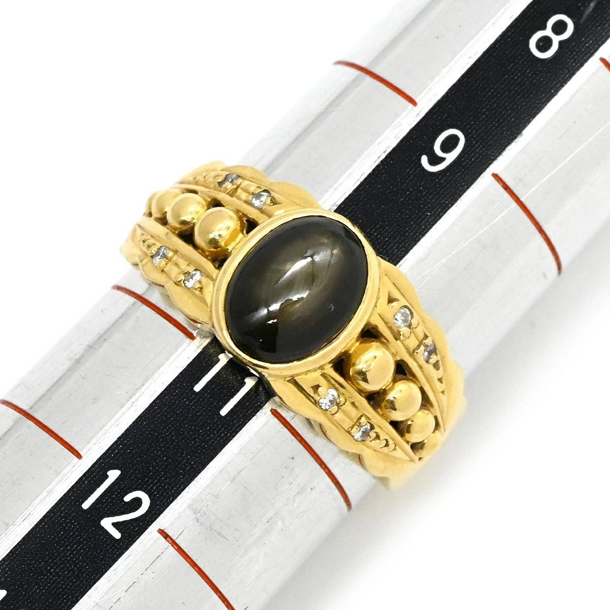 ノンブランド NON BRAND リング 指輪 ブラックスターサファイア ダイヤ リング K18YG ダイヤモンド ブラックスターサファイア ブラック×イエローゴールド 黒 Au750 18K 18金 オーバルカボション 天然石 - 11号 レディース定番 人気 美品 【中古】