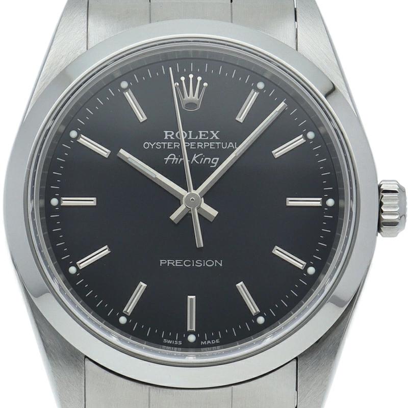 | ロレックスの最古のペットネームを持つ「エアキング」Ref.14000M。名機Cal.3130へ進化し、安定性とメンテナンス性が向上した改良モデルです。34mmの小ぶりなケースと、日付のない完全なシンメトリーデザインは「シンプルイズベスト」を体現。流行に左右されず、長く愛用できる生産終了の定番機です。 |
