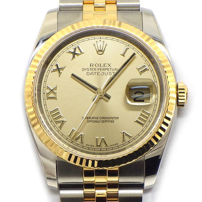 ■商品名Rolex 腕時計 デイトジャスト 116233 M番 2007-2008年製 サンレイ シャンパンゴールド文字盤 ルーレット刻印 デイト K18YG SS 自動巻き 【中古】