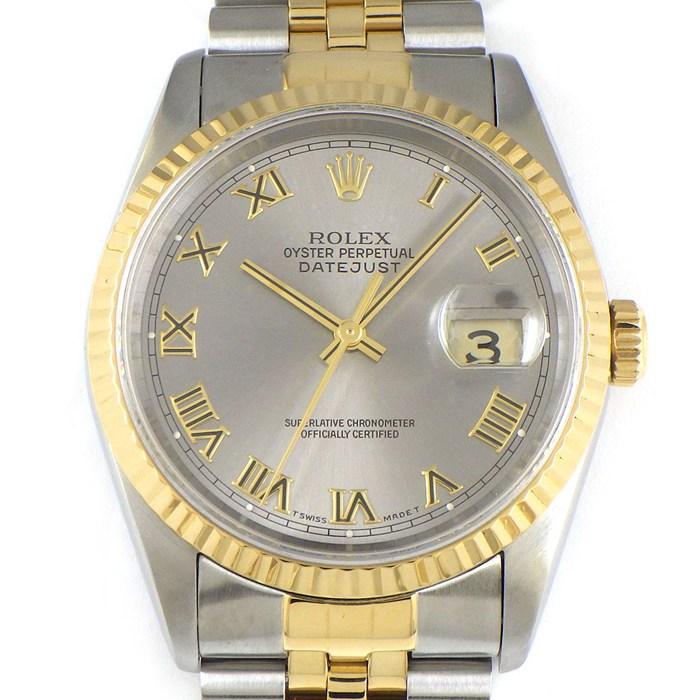 Rolex 腕時計 デイトジャスト 16233 W番 1994-1995年製 ローマンインデックス サンレイ シルバー文字盤 フルーテッドベゼル ジュビリーブレス K18YG SS 自動巻き 【中古】