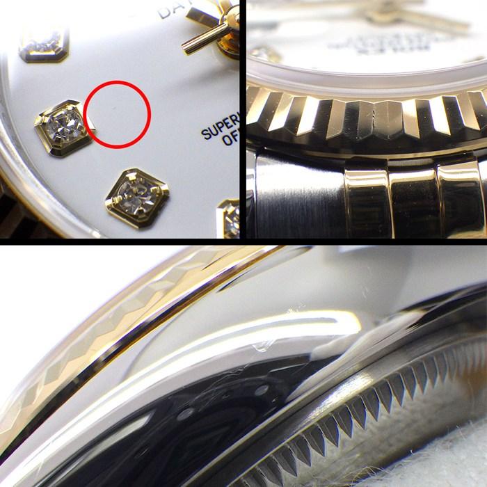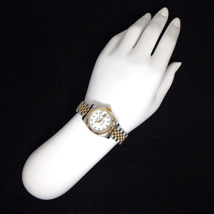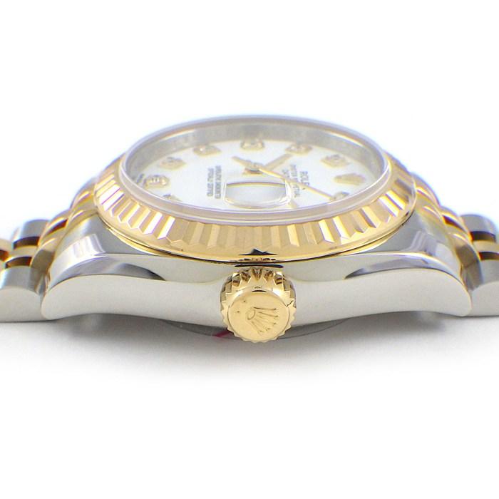 Rolex 腕時計 デイトジャスト 179173G 10ポイント ダイヤインデックス ホワイト文字盤 ルーレット刻印 ランダムシリアル デイト K18YG SS 自動巻き 【箱・保付き】 【中古】