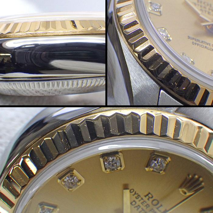 ■商品名Rolex 腕時計 デイトジャスト 79173G Y番 2002年製 10ポイント ダイヤインデックス サンレイ シャンパンカラー文字盤 フルーテッドベゼル ジュビリーブレス K18YG SS 自動巻き 【中古】