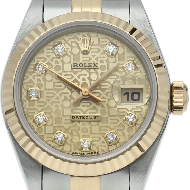 | ロレックスの人気ドレスウォッチで幅広年齢層に人気のデイトジャスト。イエローゴールドとステンレスのコンビ仕様に10Pダイヤが施されてます。人気の高いコンピューター文字盤です。 |