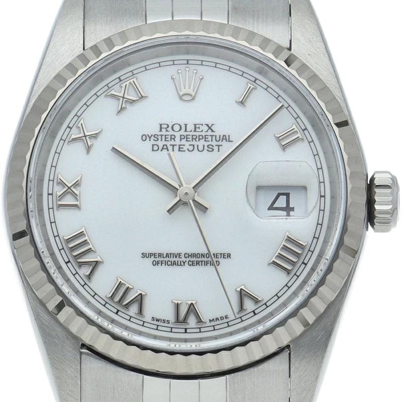 | ロレックスのドレスウォッチの王道「デイトジャスト」。ホワイトゴールドとステンレスの組み合わせが上品で高級感を感じさせる1本です。 |