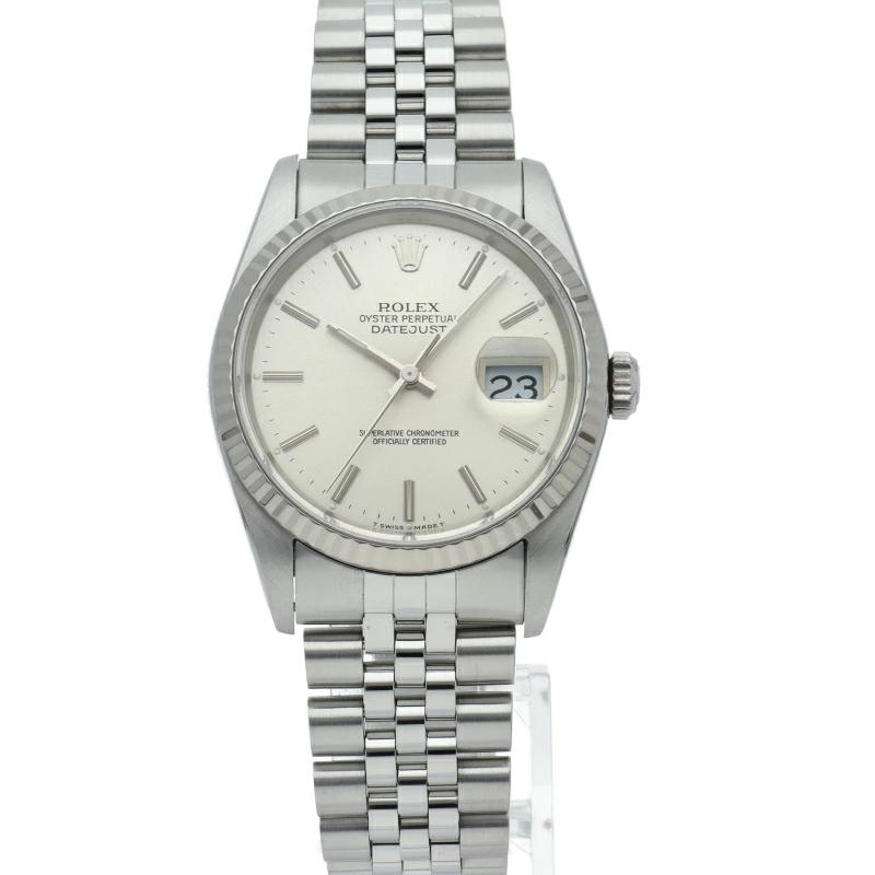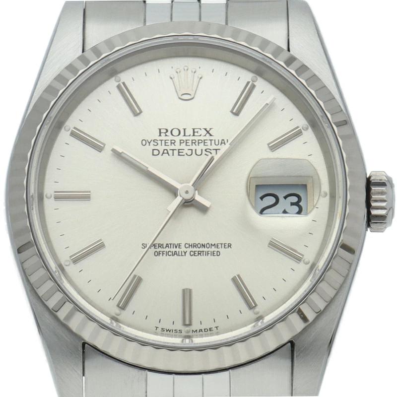 | ロレックスのドレスウォッチの王道「デイトジャスト」。ホワイトゴールドとステンレスの組み合わせが高級感を感じさせる1本です。 |