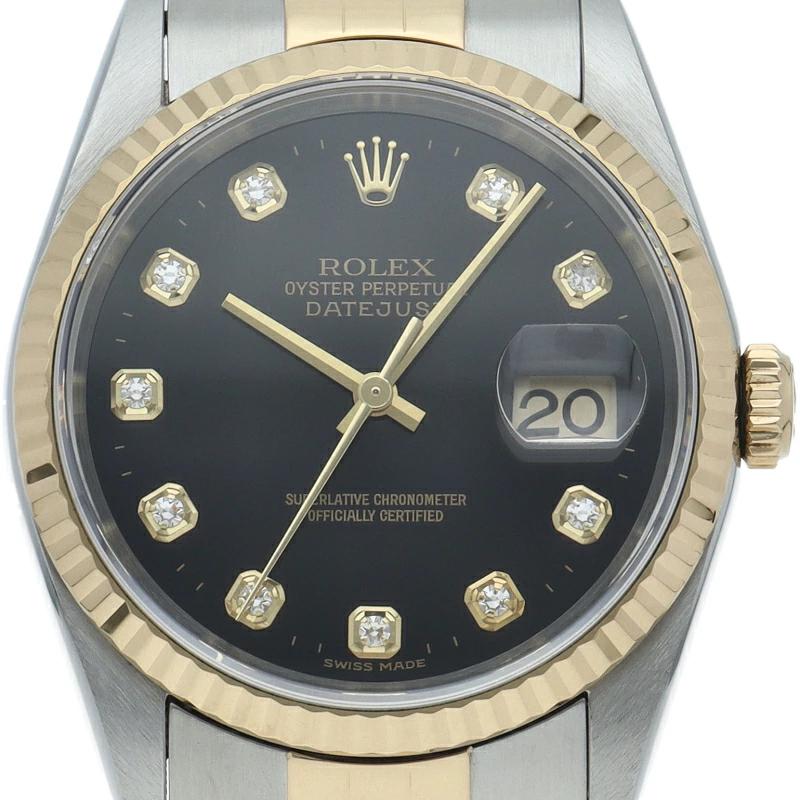 | ロレックスのドレスウォッチの王道「デイトジャスト」。イエローゴールドとステンレスの組み合わせが上品で高級感を感じさせる1本です。 |