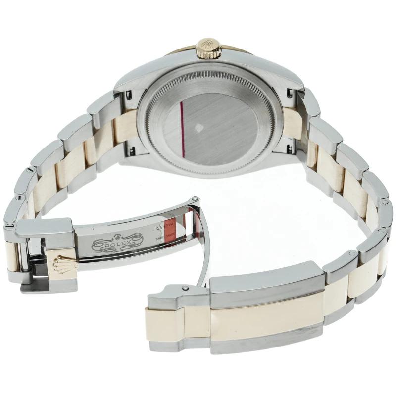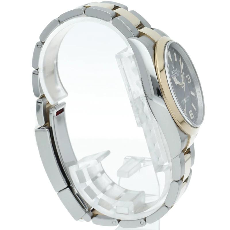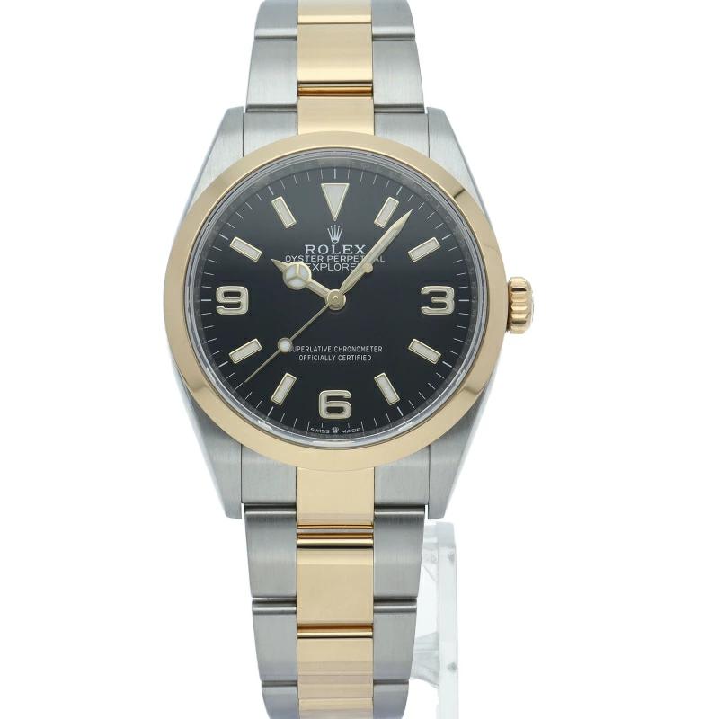 | 新たに加わったイエローゴールドとステンレスのコンビモデルのRef.124273も、124270と同様に36mmケースでの登場となりました。ムーブメントには、高いエネルギー効率と信頼性を両立させるロレックス特許のクロナジーエスケープメントを採用し、シリコン製ヘアスプリングと高性能パラフレックスショックアブソーバを装備した70時間パワーリザーブのキャリバー3230を搭載。 |