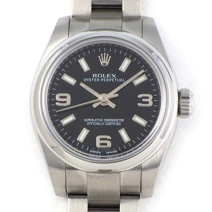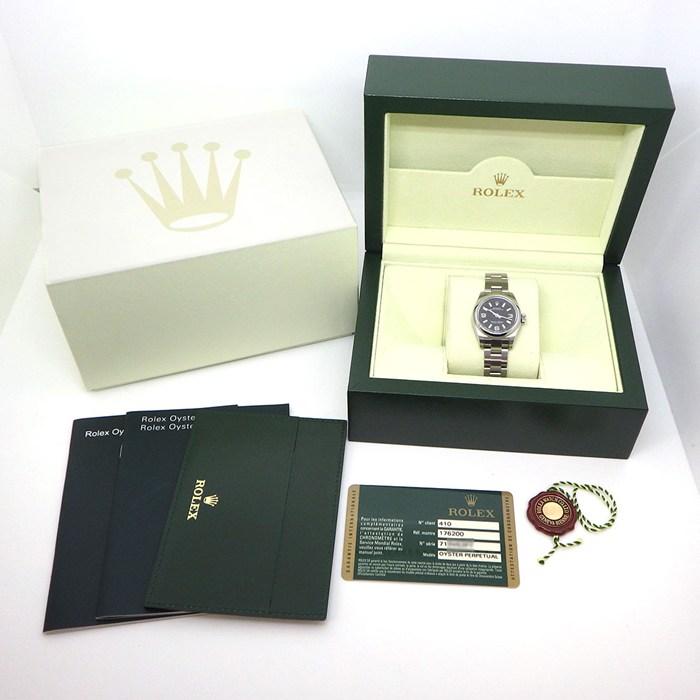 ■商品名Rolex 腕時計 オイスターパーペチュアル 176200 ブラック文字盤 ルーレット刻印 裏スケ 夜光針・インデックス SS 自動巻き 【箱・保付き】 【中古】
