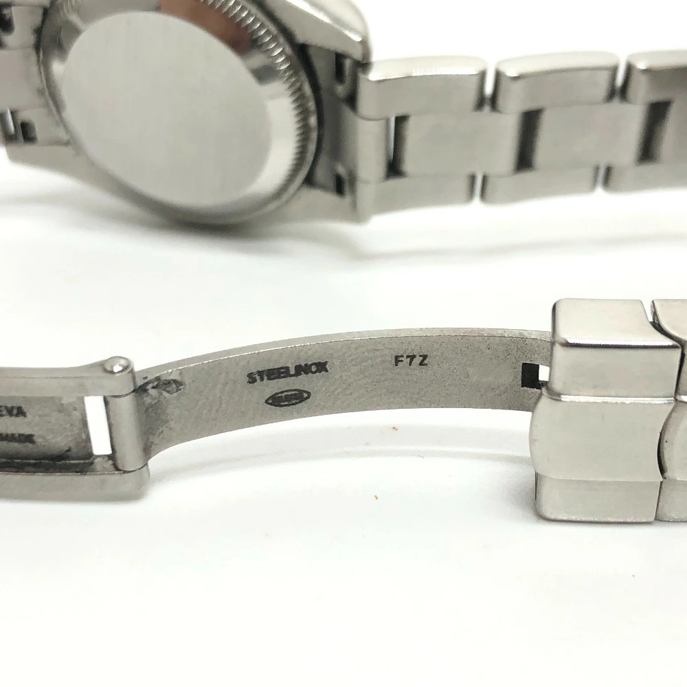 | 商品説明 | 防水性の高いオイスターケースに、両方向回転ローターによる自動巻き機構を搭載。日付を省いた26mm径のシンプルなデザインで、幅広い層の女性に人気のモデルです。 |