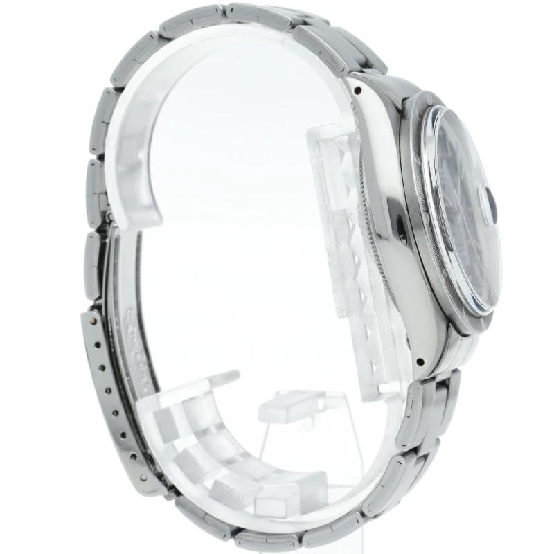 | オイスターパーペチュアル デイトのアンティーク商品で1501です。少し小振りのケースサイズですが、エンジンターンドベゼルにより、存在感を演出しています。6時位置にインデックス等に貴金属が使用されている事を表すシグママークが入った、希少性・高級感の非常に高い1本です。 |