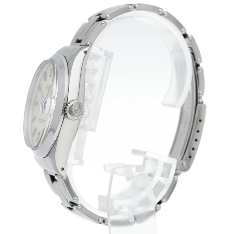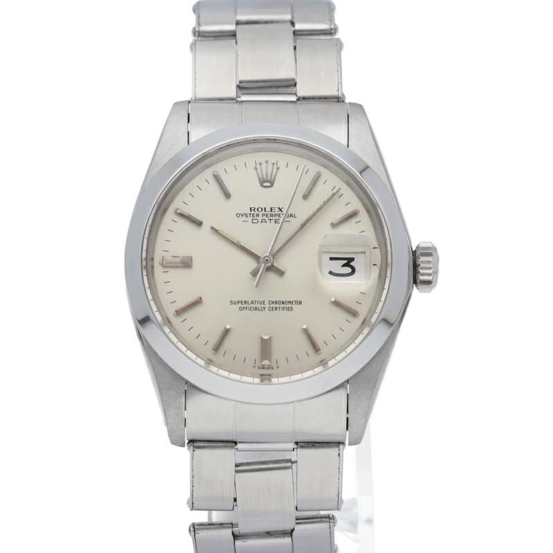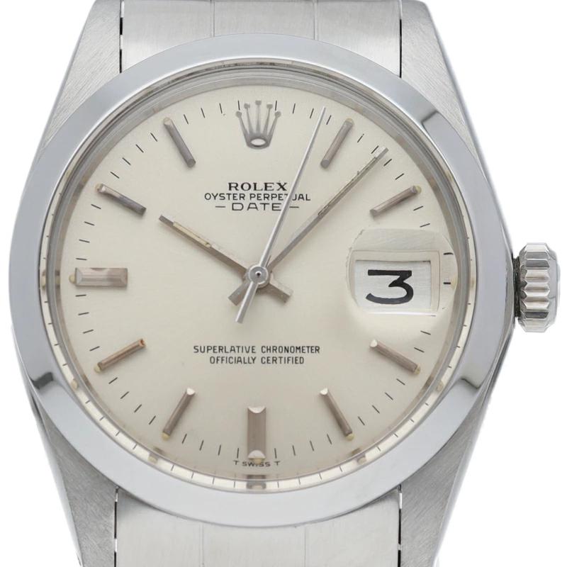 | ロレックスの中でもシンプルな3針で時計本来の機能を追求した「オイスターパーペチュアルデイト」。洗練されたデザインはスタイルを選ばず使用できます。クロノメーター表記の中央の空間が揃っている「センタースプリット」となっています。 |