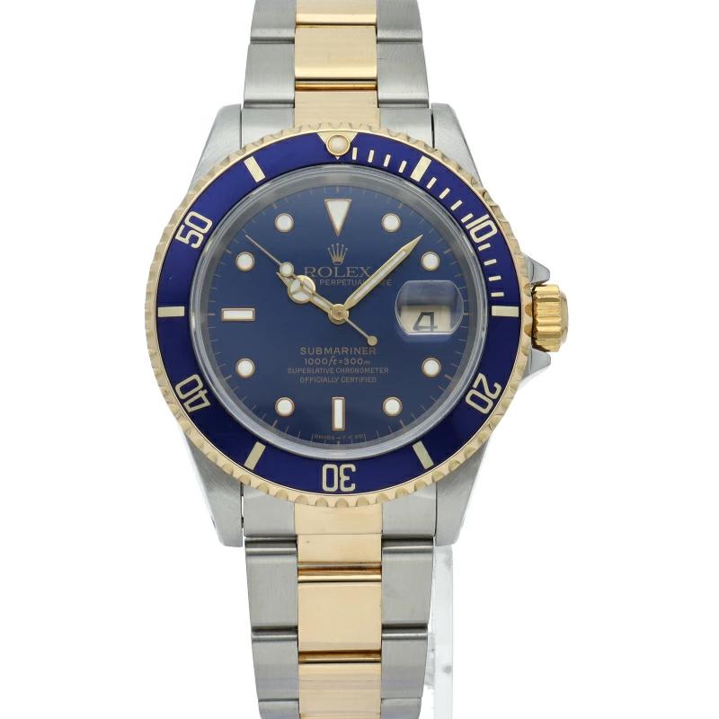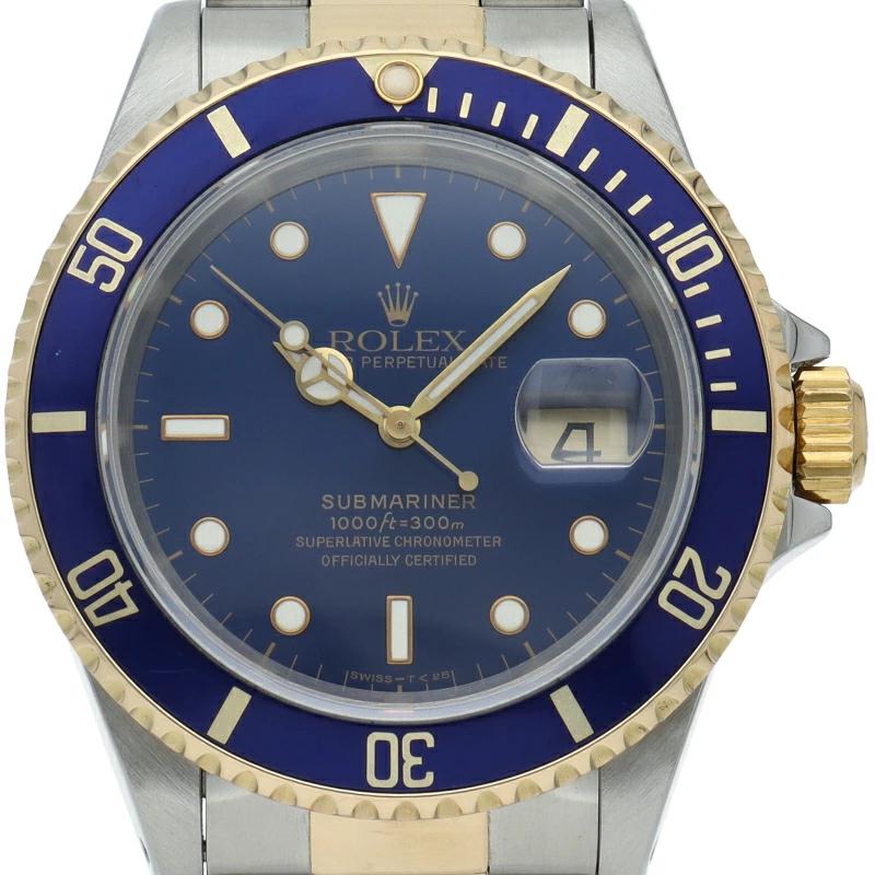| ロレックスの中でも特に人気度の高い「サブマリーナ・デイト」のイエローゴールドとステンレスのコンビモデルで高級感溢れる1本。通称「青サブ」。 |