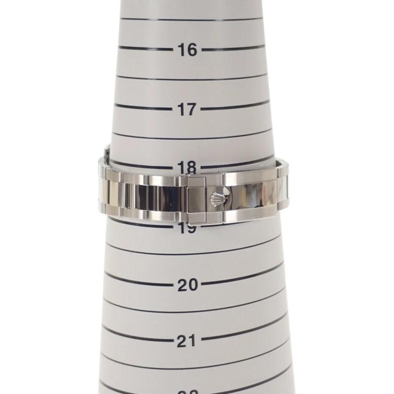 ブレスレットはオイスタースチール、ベゼルはプラチナとラグジュアリー感のあるシルバーホワイトの輝きが美しいアイテム。