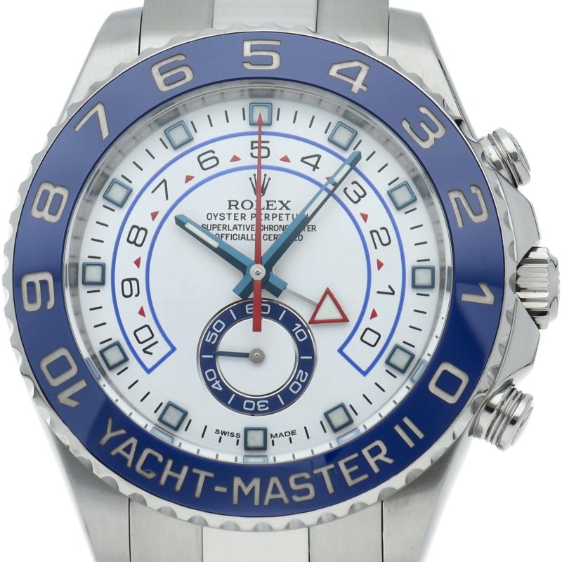 商品説明:ヨットレース競技に特化した「ヨットマスター2」。ロック&リリース・シンクロナイゼーション・プログラマブル・カウントダウン機能、最大10分までのカウントダウンクロノを搭載した「プログラマブル・クロノグラフ」を採用した実用性の高い1本。