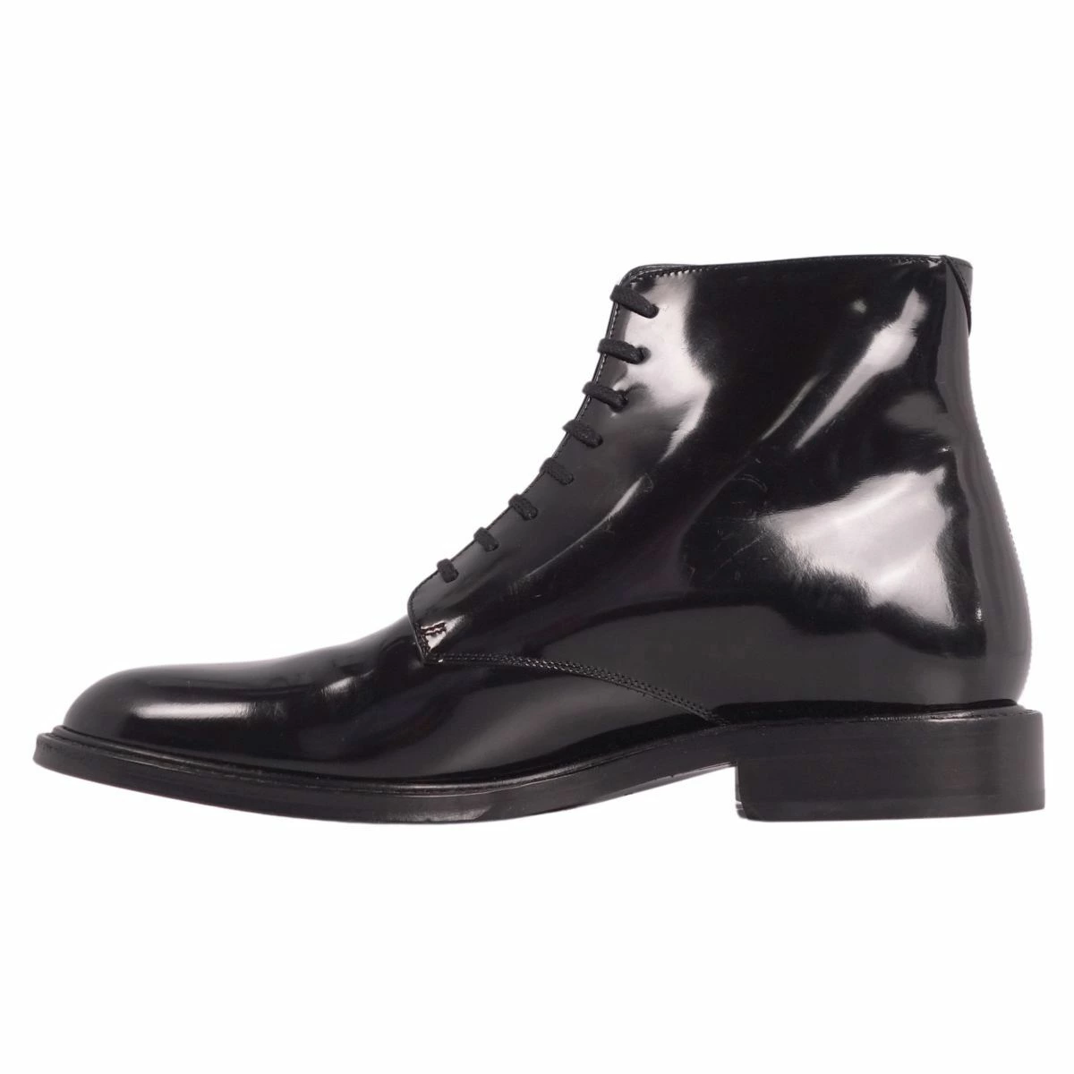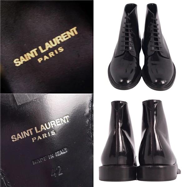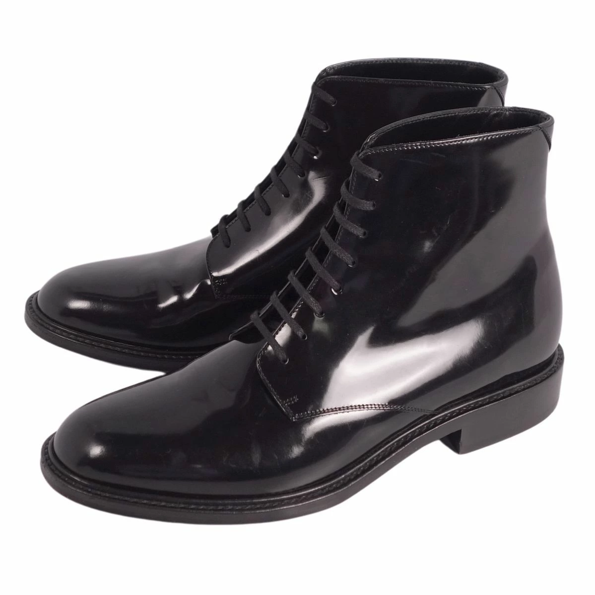 Pre-owned Saint Laurent Paris Men's Lace-Up Patent Leather Short Boots, Size 42 (equivalent to 27cm), Black. Made in Italy.