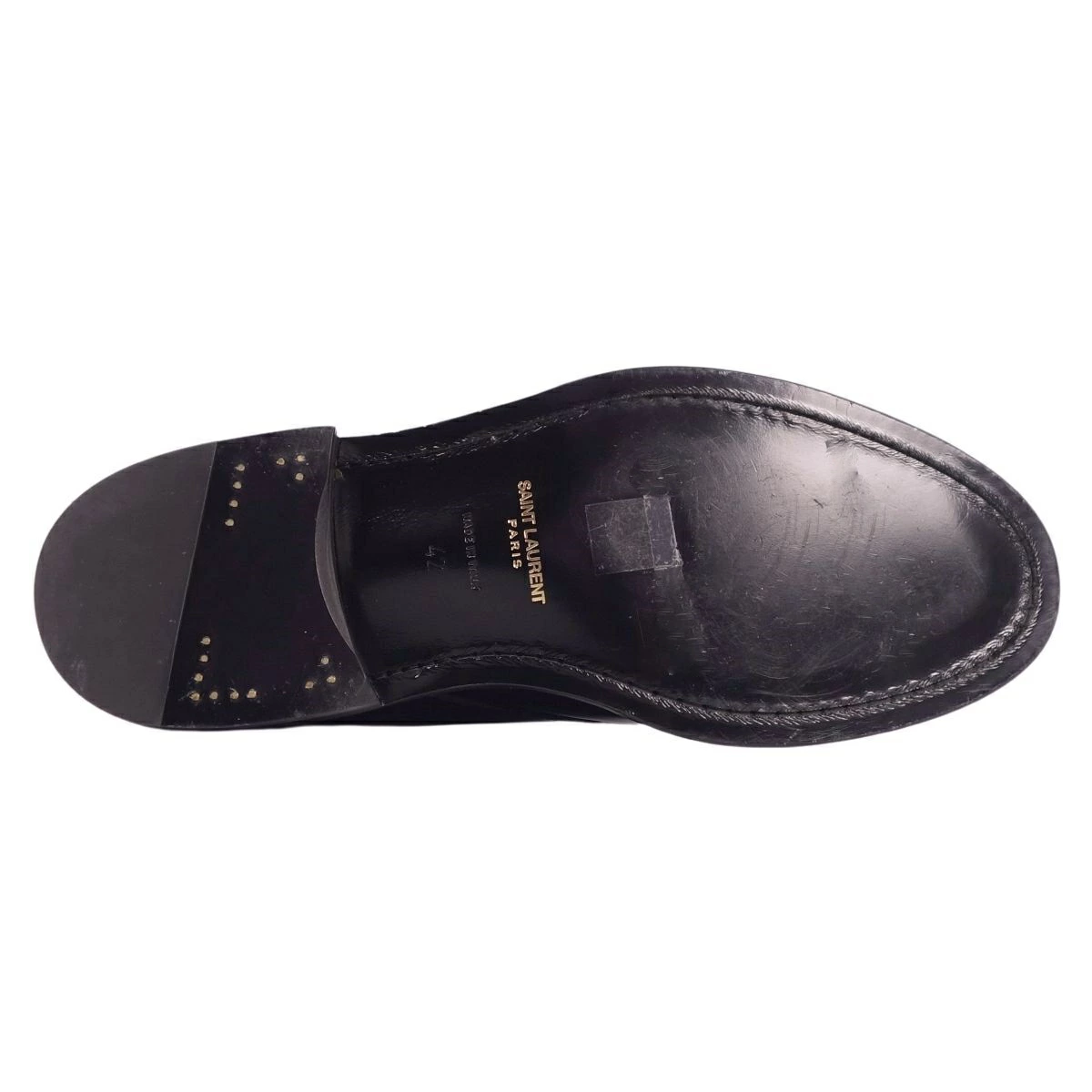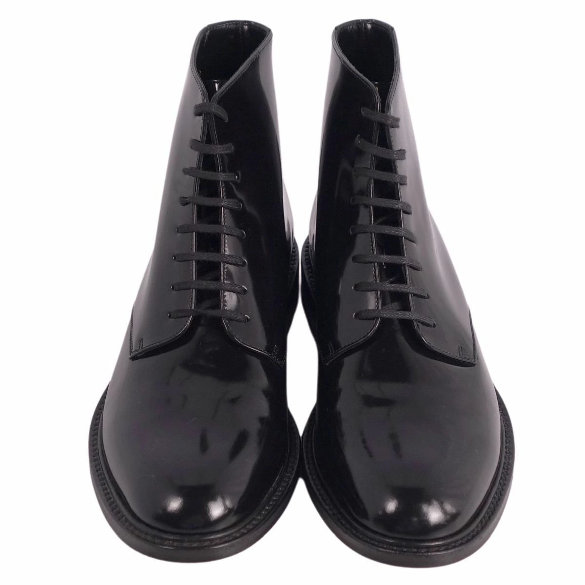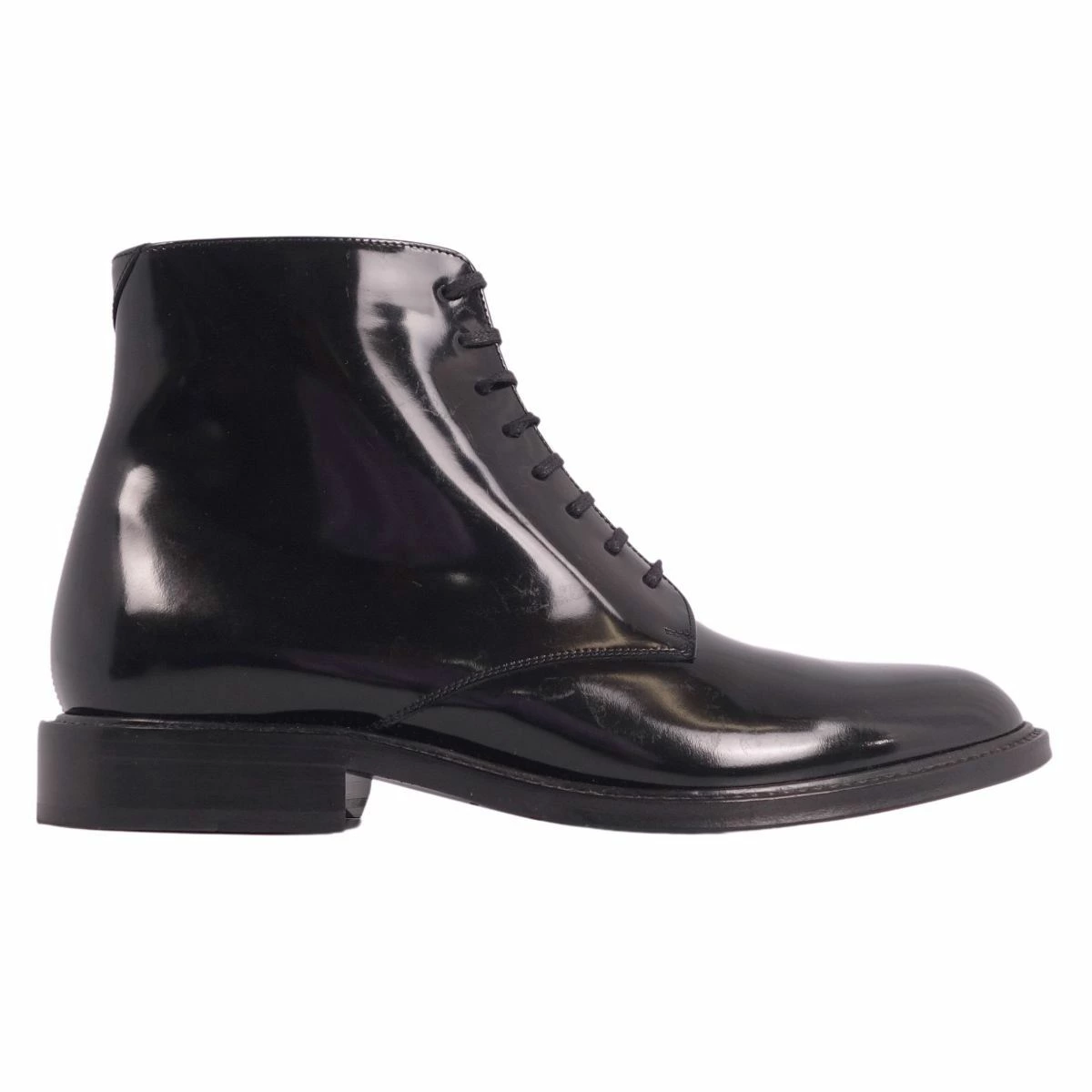 Pre-owned Saint Laurent Paris Men's Lace-Up Patent Leather Short Boots, Size 42 (equivalent to 27cm), Black. Made in Italy.