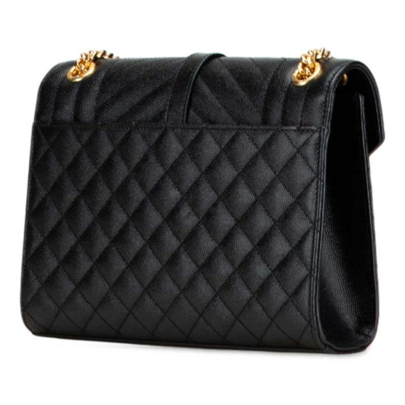 Pre-owned Saint Laurent YSL Logo Envelope Medium Shoulder Bag in Black and Gold Leather.