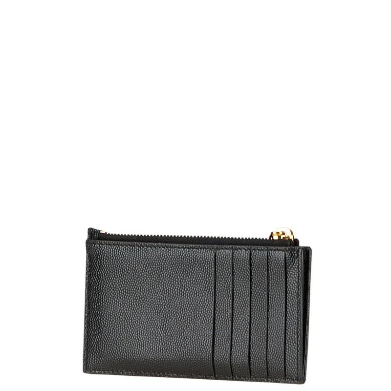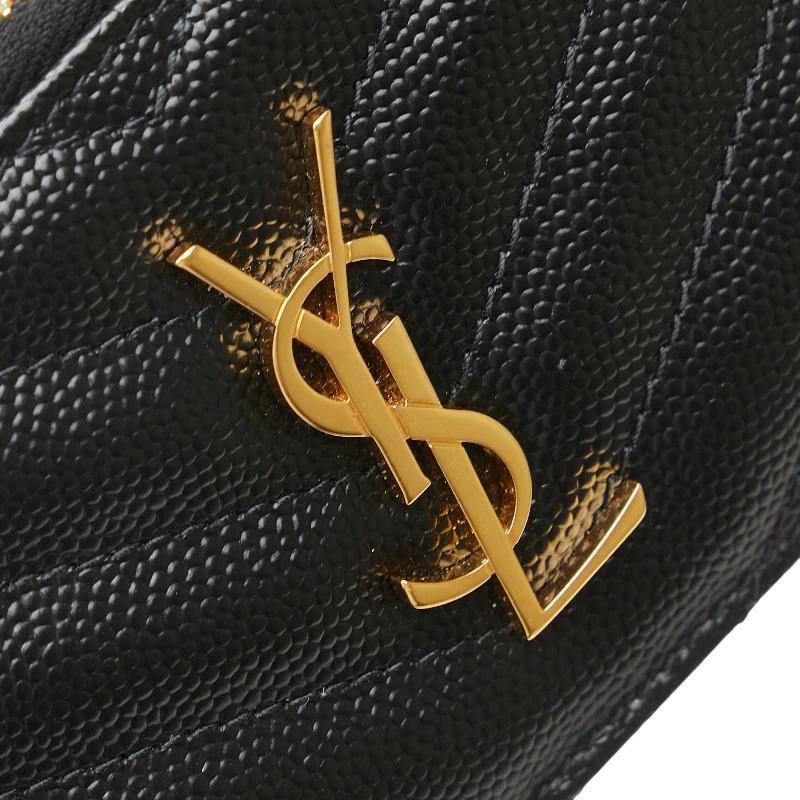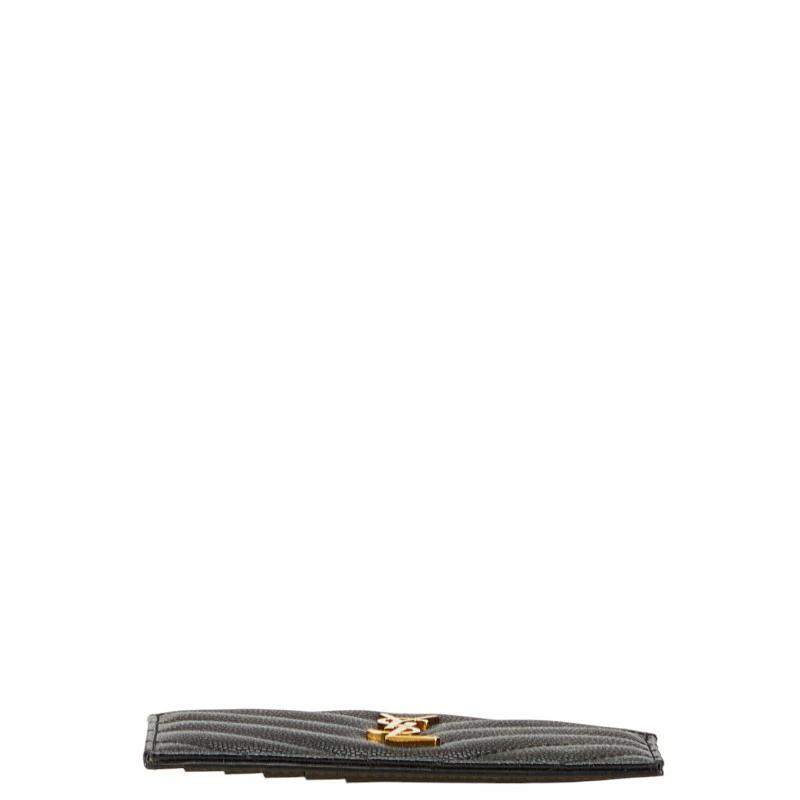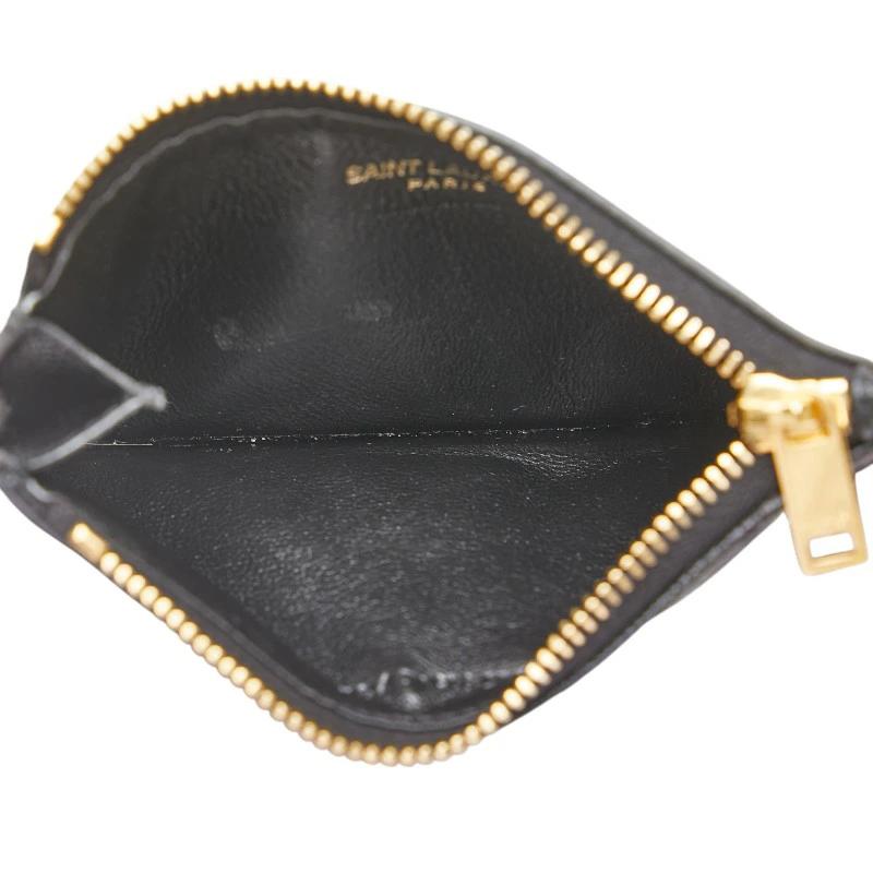 Pre-owned Saint Laurent YSL logo V-stitch card case, fragment case, and coin case (607915) in black grain powder embossed quilted leather. Women's.