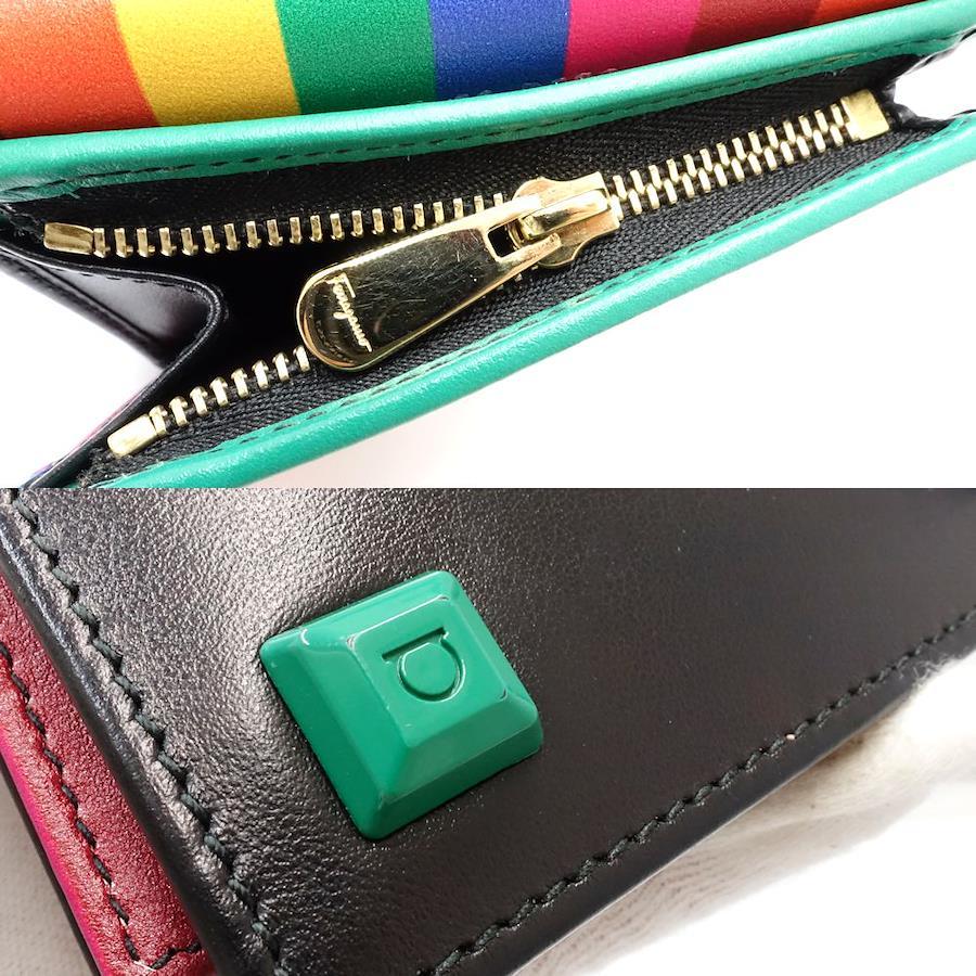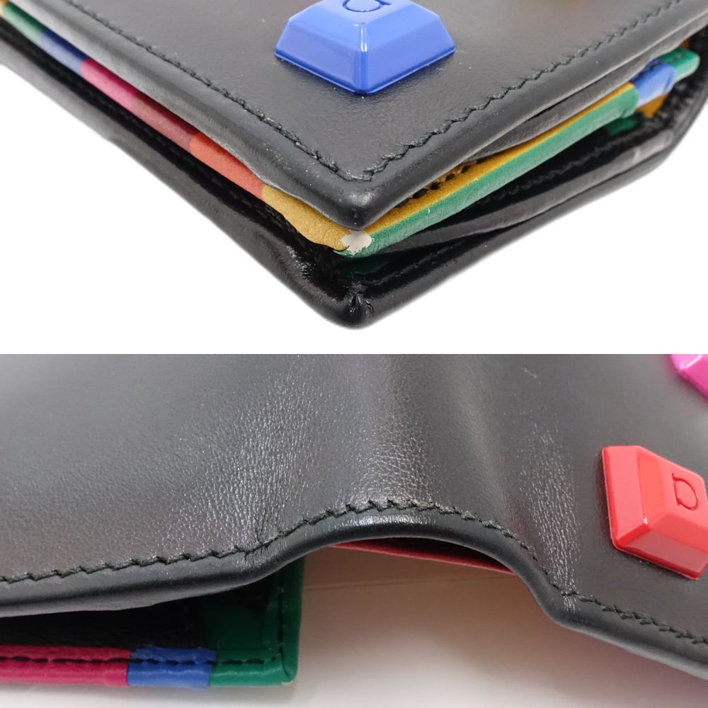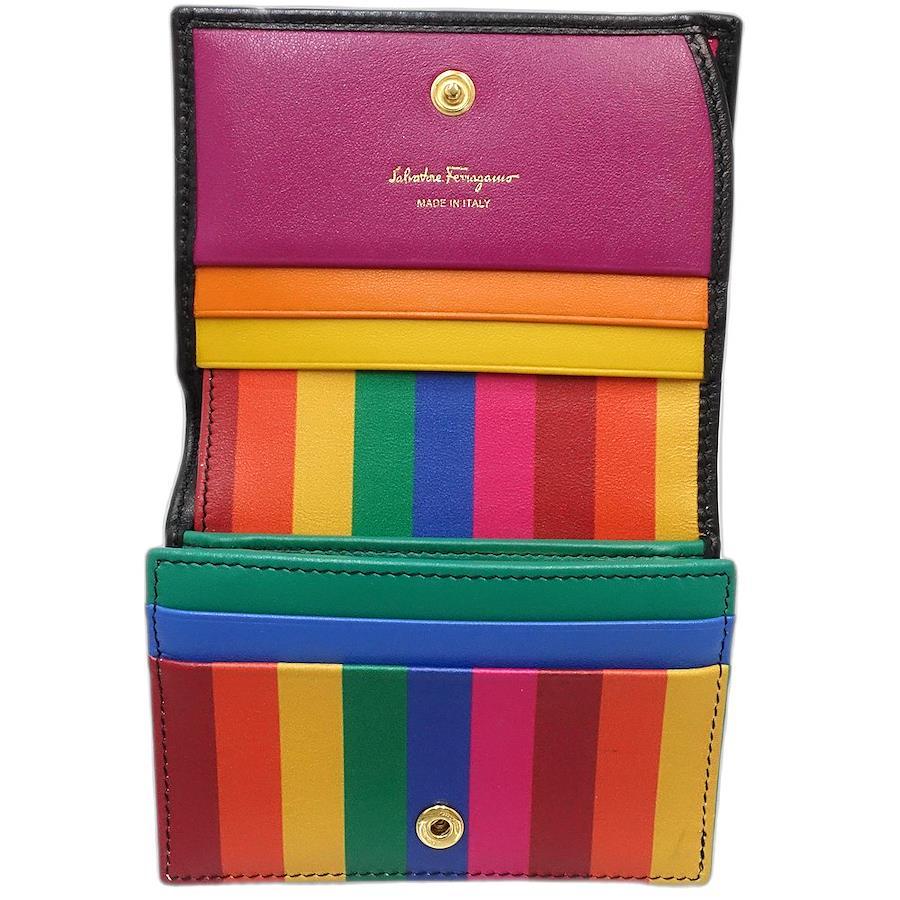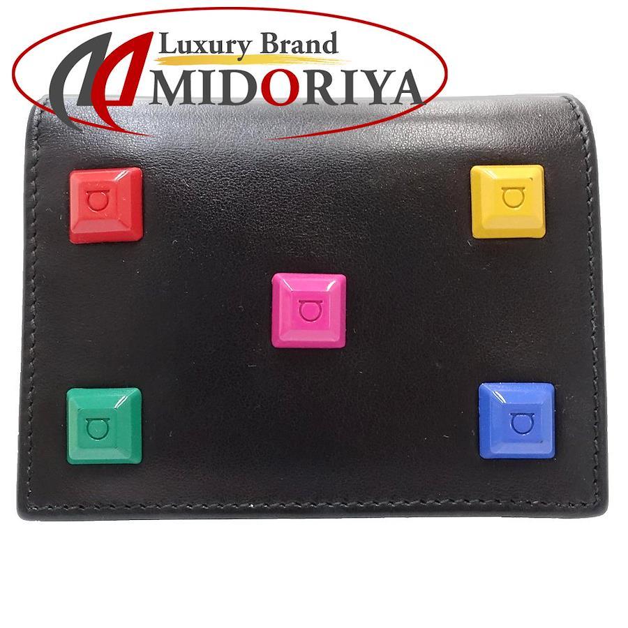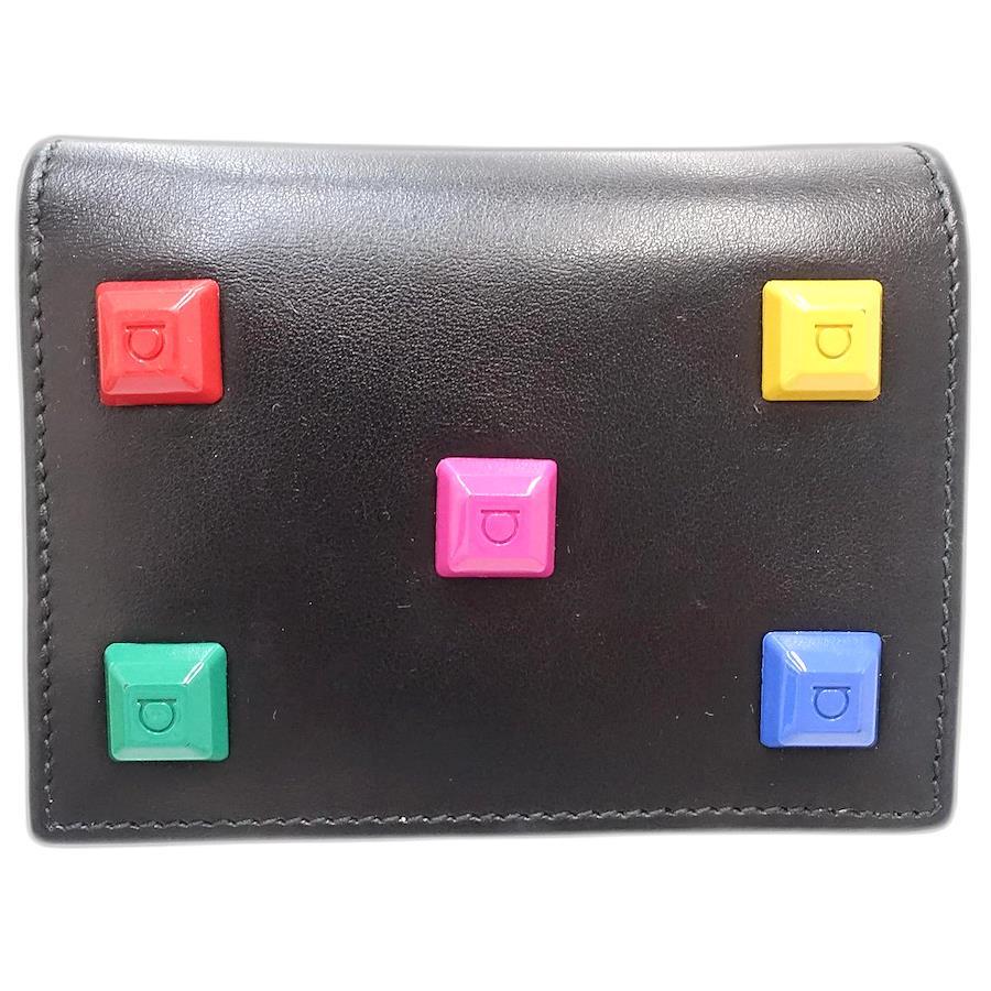 Pre-owned Salvatore Ferragamo bi-fold wallet JP-22-D570, multi-stud compact wallet in black leather with multicolored accents, model number 181242.