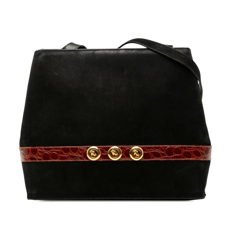 Pre-owned Salvatore Ferragamo crossbody shoulder bag in black and brown suede and leather.