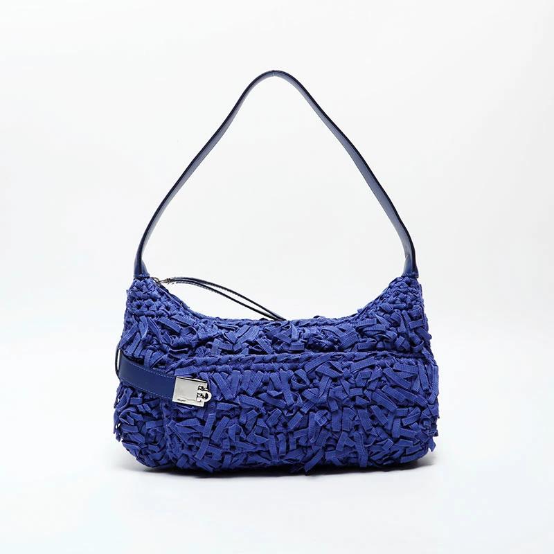 Pre-owned Salvatore Ferragamo Gancini Braided Hobo Shoulder Bag, Purple, WS22283