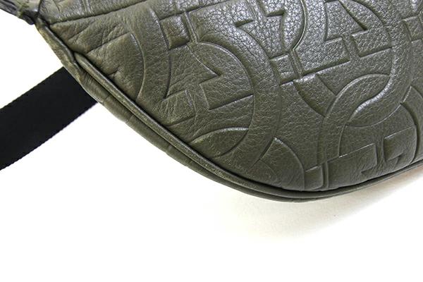 | 状態 | 外側:小キズ・薄引っかき傷あり、フチや角にはスレによる色落ちあり。ショルダーに薄汚れあり。 内側:スレ、薄汚れあり。タバコ臭系の匂い多少あり。 金具:キス・スレ・強いクスミヨゴレあり。 |