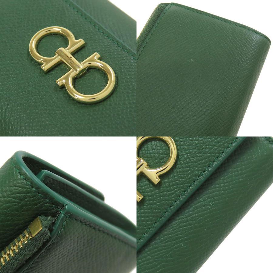 レディース二つ折り財布(小銭入れあり)Salvatore Ferragamoカラー:グリーン系レザーコンディションAB+(ABプラス)ランク