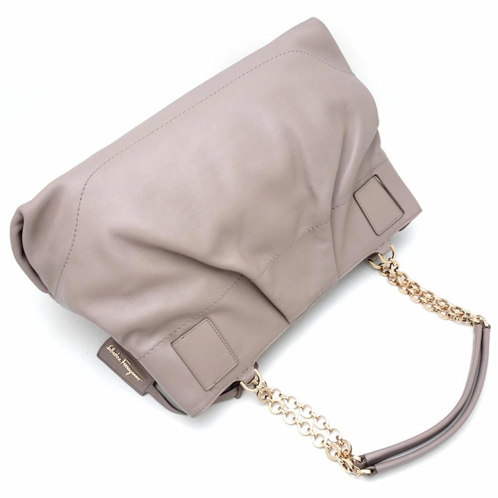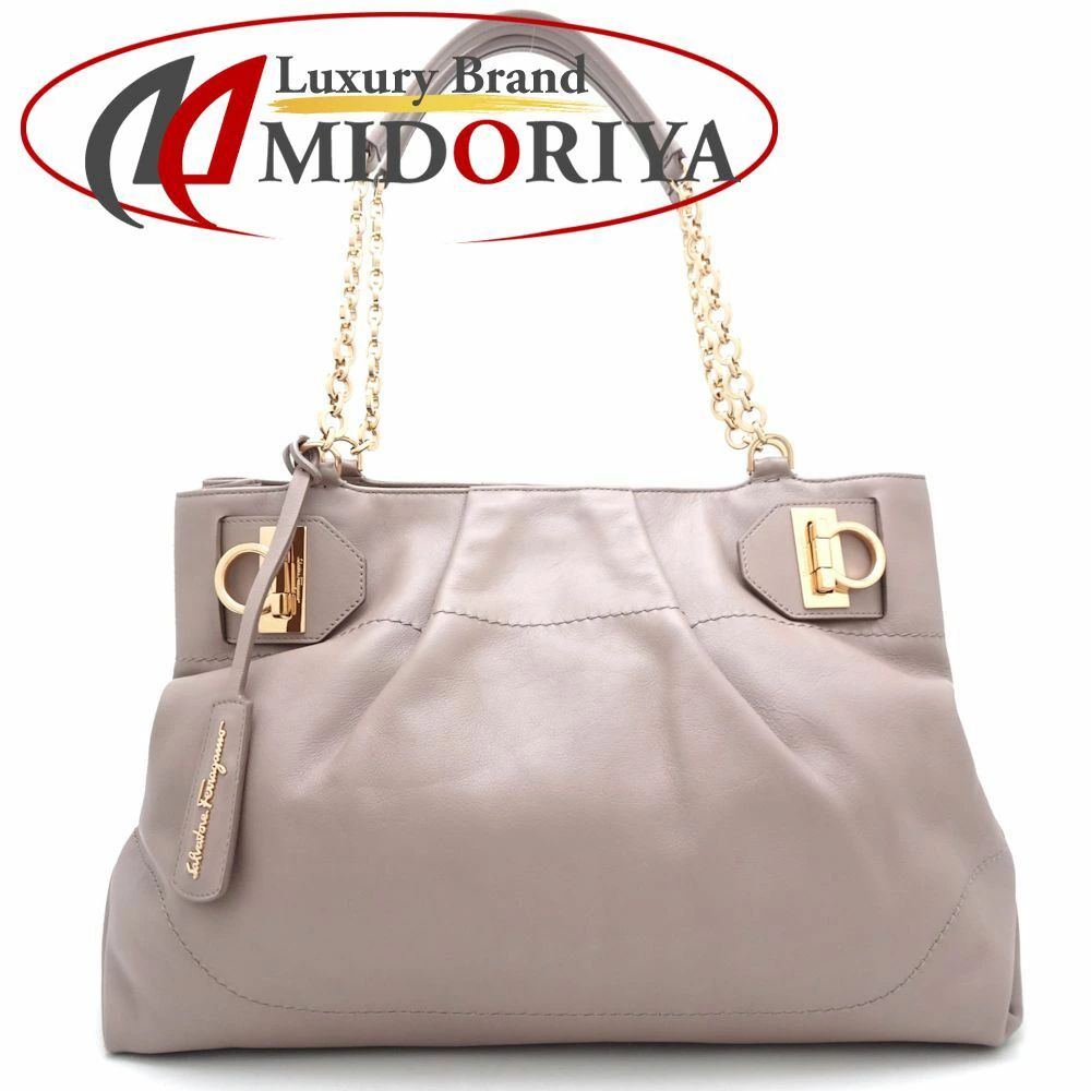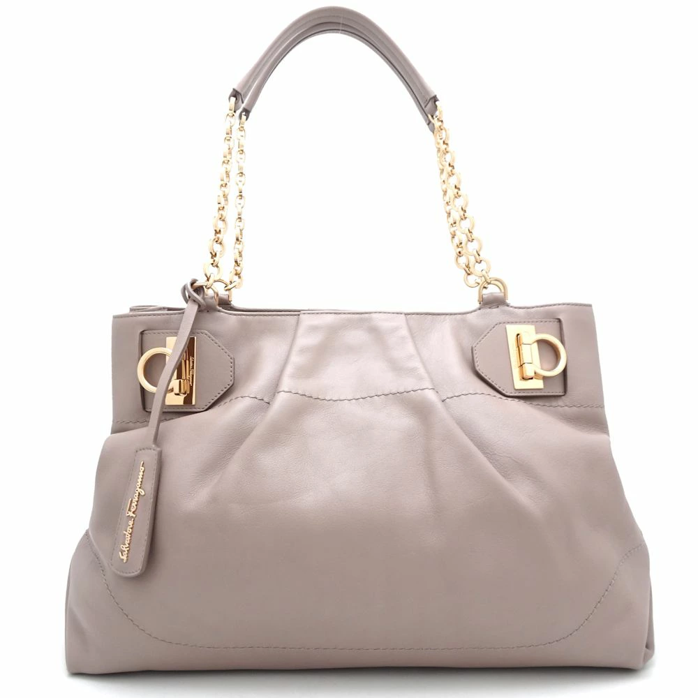 Pre-owned Salvatore Ferragamo Gancini leather tote bag in greige/351518
