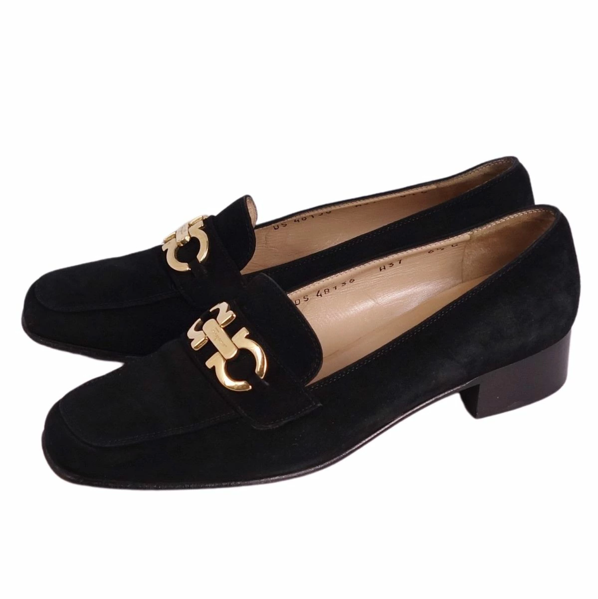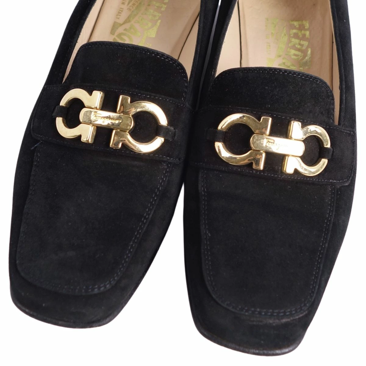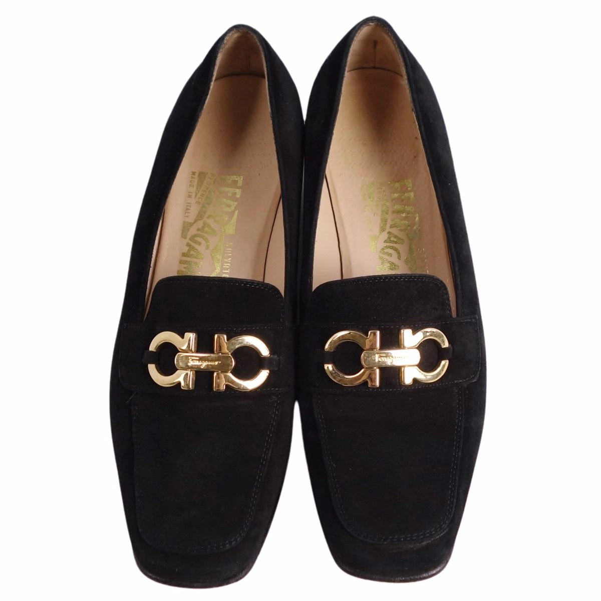 ■商品名サルヴァトーレ フェラガモ Salvatore Ferragamo ローファー モカシン ガンチーニ スウェードレザー ヒール シューズ 靴 レディース ブラック サイズ6.5C(24cm相当)■状態説明・上質なスウェードレザーを贅沢に使用した、Salvatore Ferragamoのローファーです♪・ブラックのカラーリングにアイコニックなガンチーニ金具が目を引く一品です◎・イタリア製・スウェードレザー特有のスレや内側のかかとに汚れが御座いますが、ご使用に差し支えるようなものはなく全体的に良好な状態です!【季節感:オールシーズン】【付属品:なし】■素材スウェードレザー■カラーブラック■表記サイズ6.5C(24cm相当)■実寸サイズアウトソール:約25cm幅:約7.5cm■状態ランクAB 使用感があるが、傷や汚れの気にならない状態■店舗管理番号ce08dr-rm10e32980womens_black