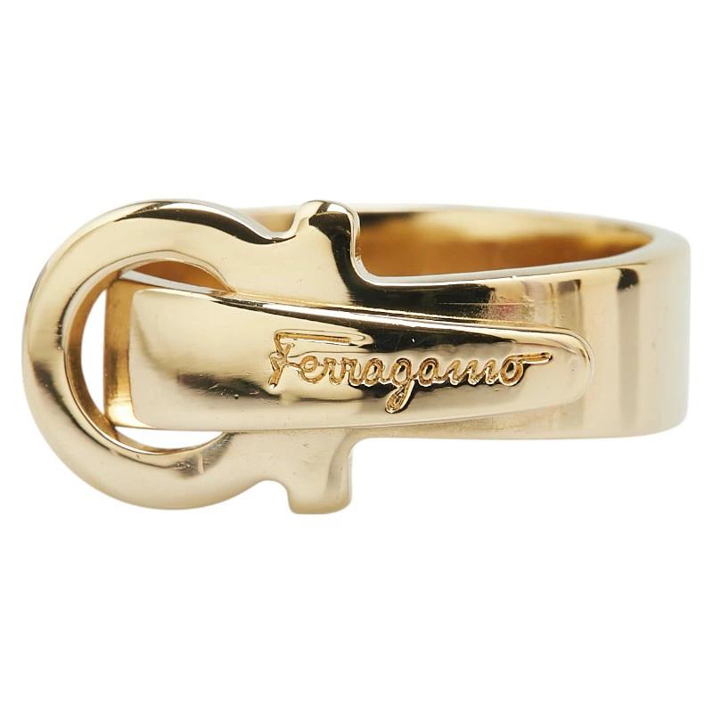 Pre-owned Salvatore Ferragamo Gancini scarf ring, gold plated, for women.