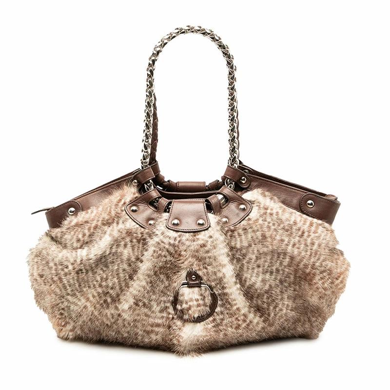 Pre-owned Salvatore Ferragamo Gancini shoulder bag in beige with brown fur. Women's.