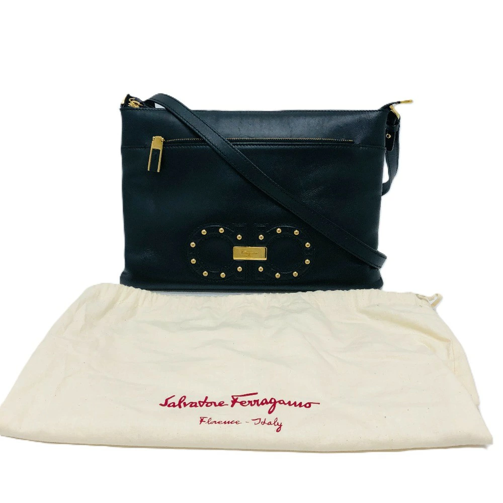 Pre-owned Salvatore Ferragamo Gancini Shoulder Bag in Black Leather for Women