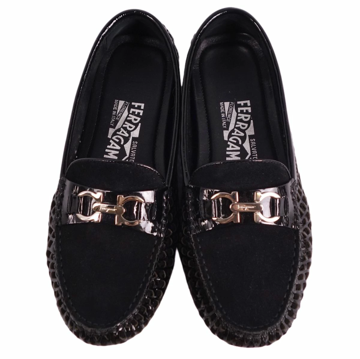 ■商品名サルヴァトーレ フェラガモ Salvatore Ferragamo ローファー モカシン ガンチーニ スウェード エナメル シューズ 靴 レディース ブラック サイズ5M(22.5cm相当)■状態説明・上質なスウェードレザーを贅沢に使用した、Salvatore Ferragamoのローファーです♪・ブラックのカラーリングにアイコニックなガンチーニデザインが目を引く一品です◎・イタリア製・USEDですが気になるようなキズや汚れなどはなく全体的にキレイな状態です!【季節感:オールシーズン】【付属品:箱/保存袋】■素材スウェードレザー/エナメルレザー■カラーブラック■表記サイズ5M(22.5cm相当)■実寸サイズアウトソール:約24cm幅:約8cm■状態ランクA 使用感の少ない全体的にキレイなUSED品■店舗管理番号ce07dt-rm10e32648womens_black