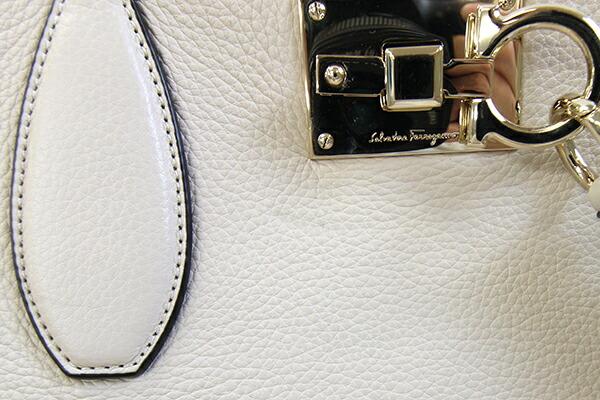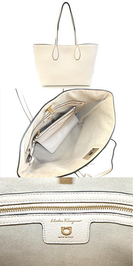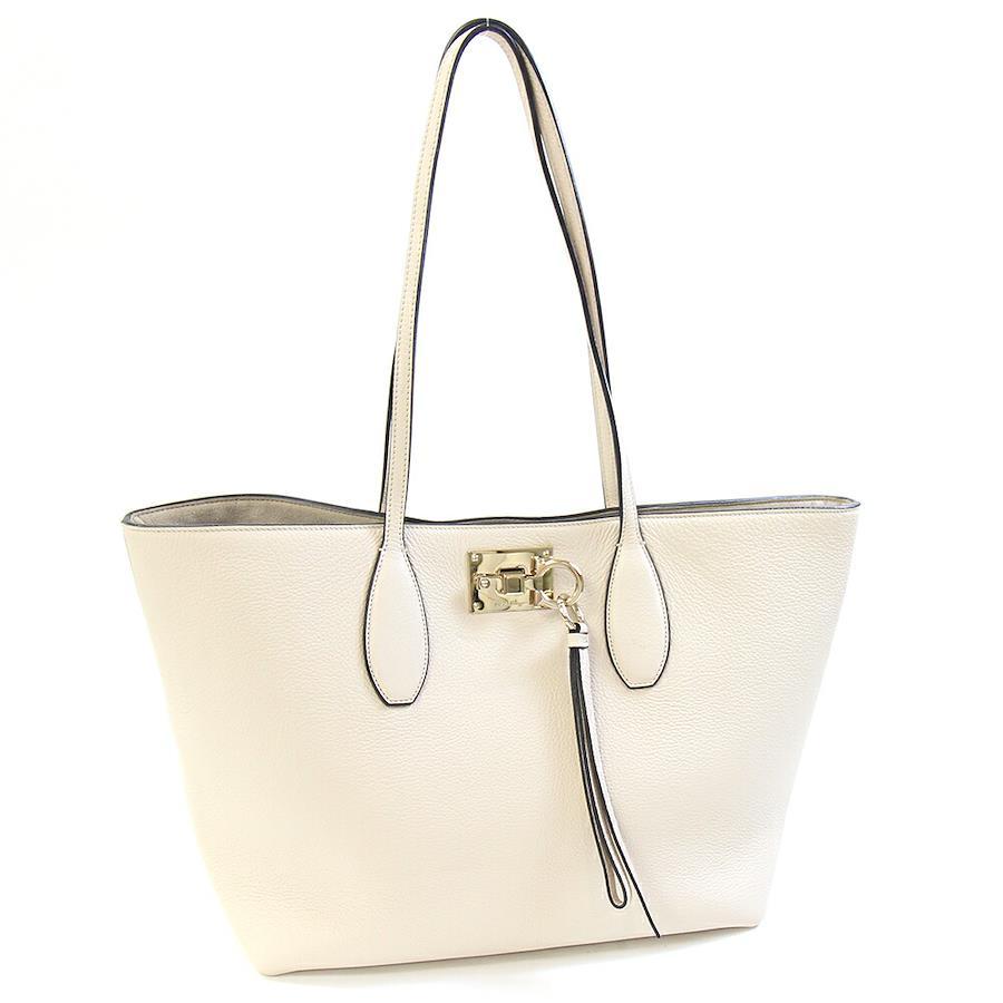 フェラガモトートバッグガンチーニ21H655アイボリーレザー中古肩掛けショルダーロゴポーチ付レディースSalvatoreFerragamo