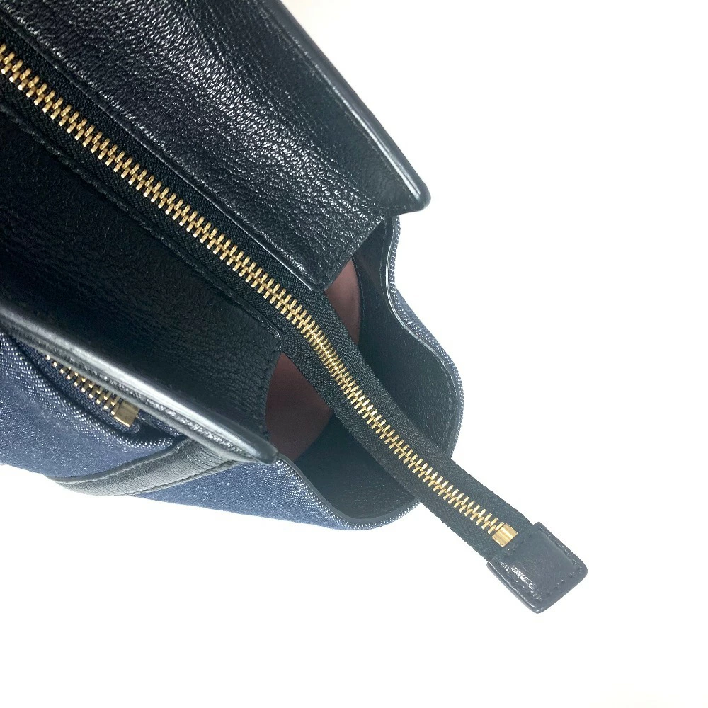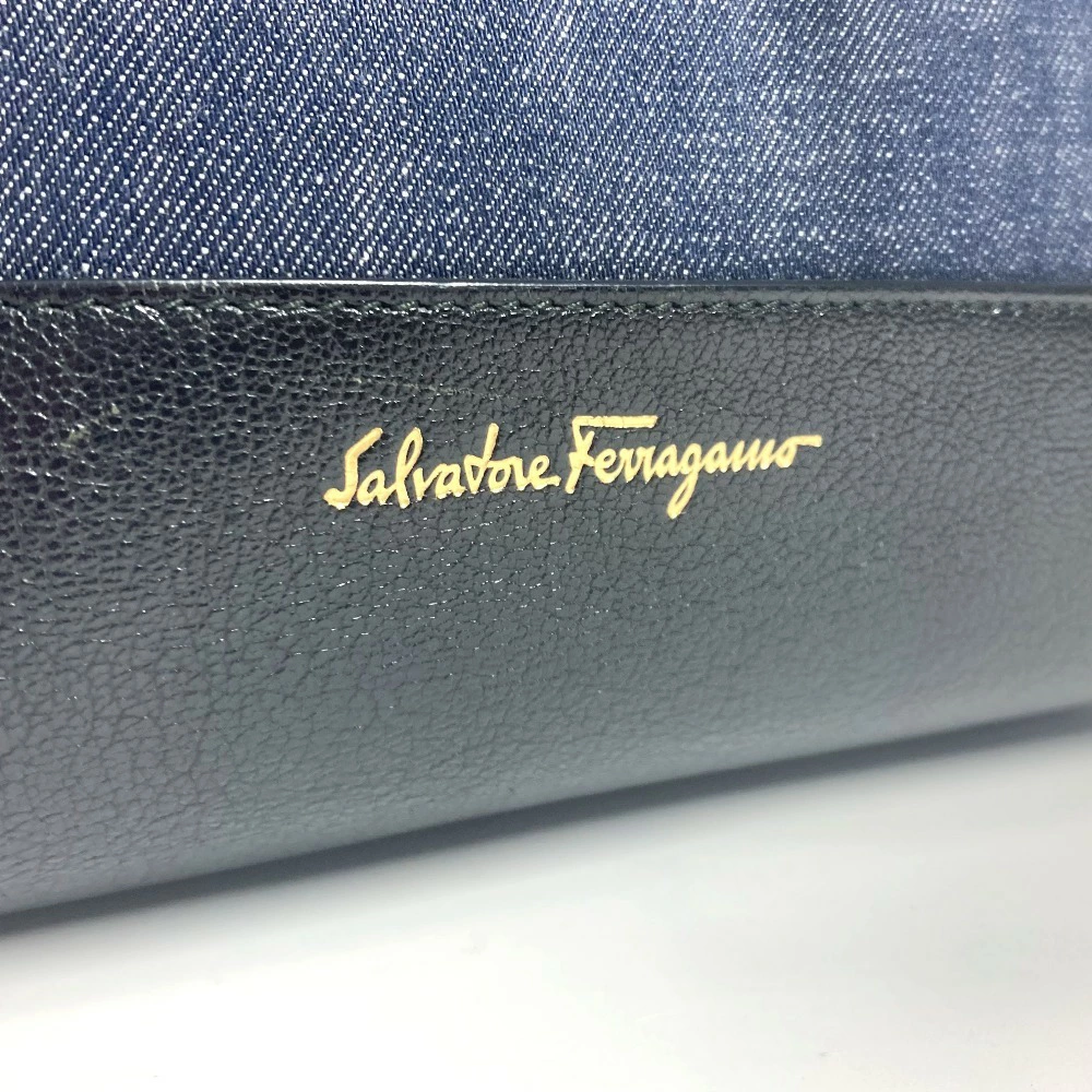 Pre-owned Salvatore Ferragamo logo handbag, shoulder bag, tote bag in denim/leather, blue.