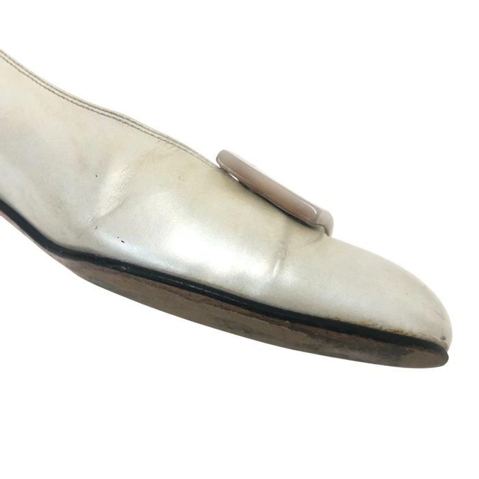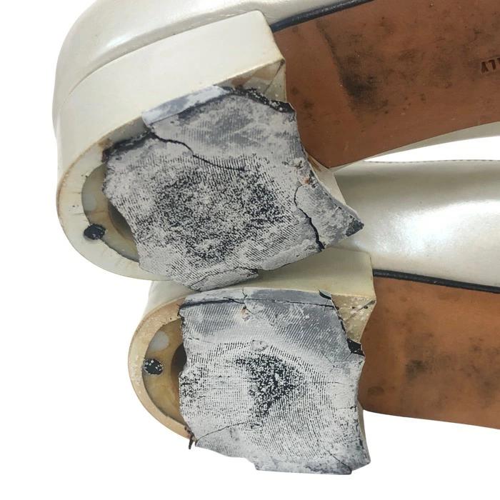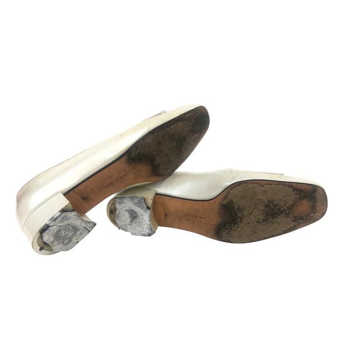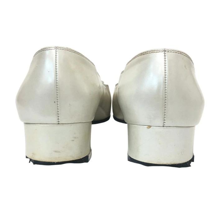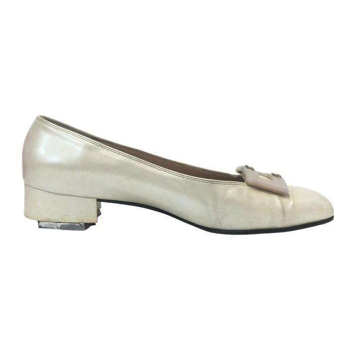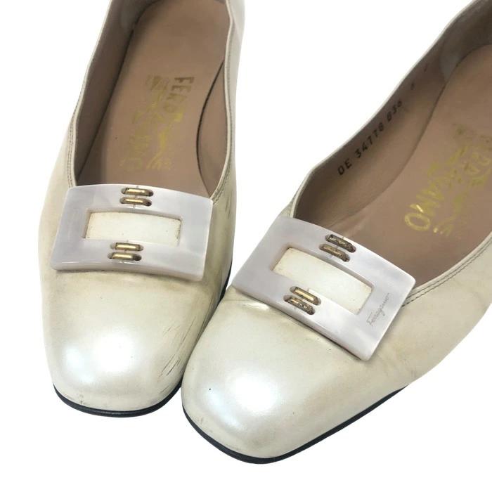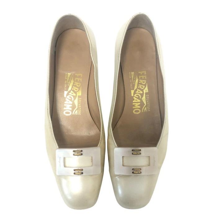 Pre-owned Salvatore Ferragamo square-toe pumps in pearl white leather with a 3cm heel, size 5 (equivalent to a 22.5cm heel).